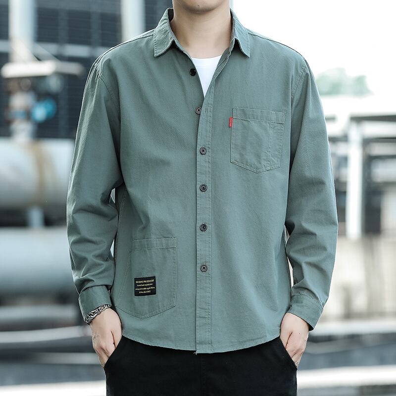 シャツメンズ長袖ソリッドカラーメンズシャツ作業服溶接服春と秋の作業服インチシャツトップスメンズ ロング スプリング 春物 オータム 秋物 128517461023256