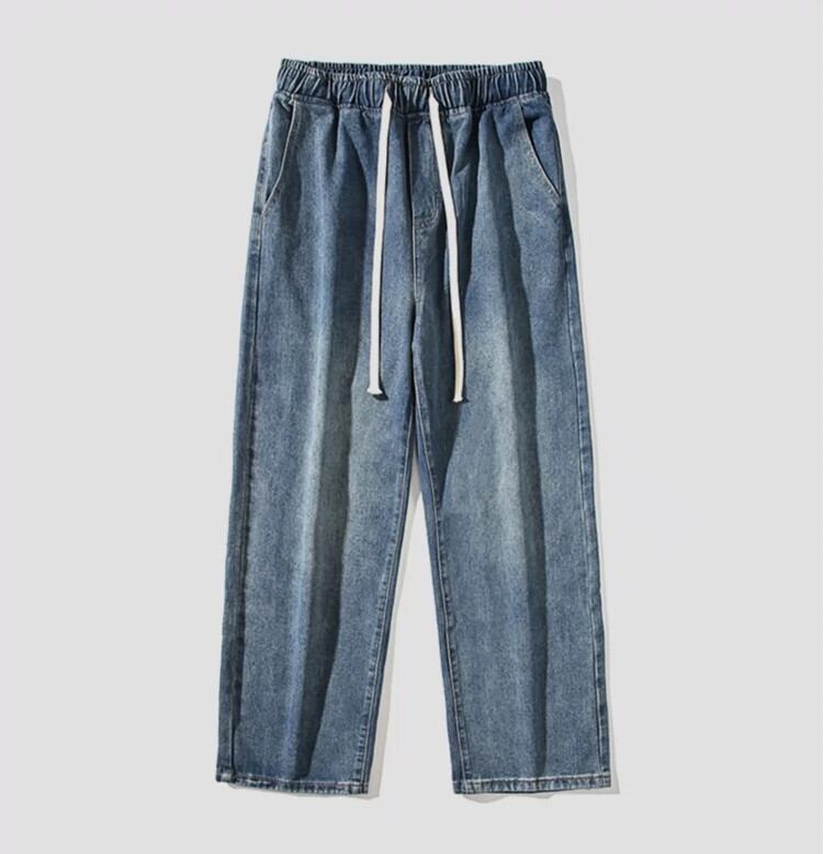 イエロー泥染めアメリカンハイストリートワイドレッグジーンズメンズトレンドブランド伸縮性ウエストドレープゆったりストレートパンツ中学生 エラスティック 1285126692362839