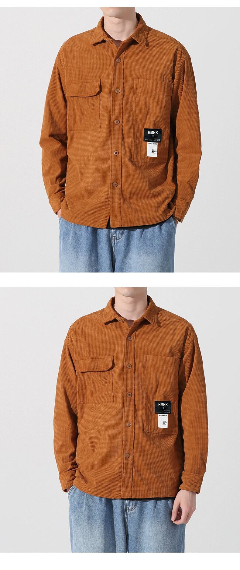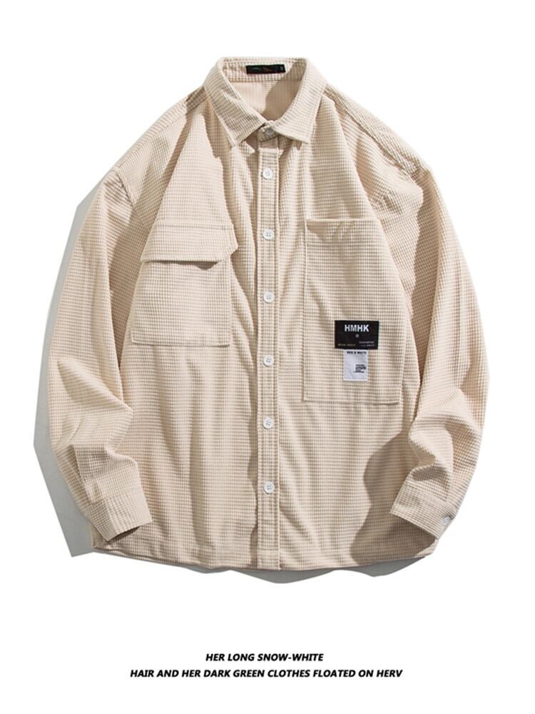 ワッフル シャツ ジャケット メンズ 春と秋のトレンド 多用途 シンプル ゆったり ワークウェア ジャケット 長袖 ロング スプリング 春物 オータム 秋物 1285138241160501