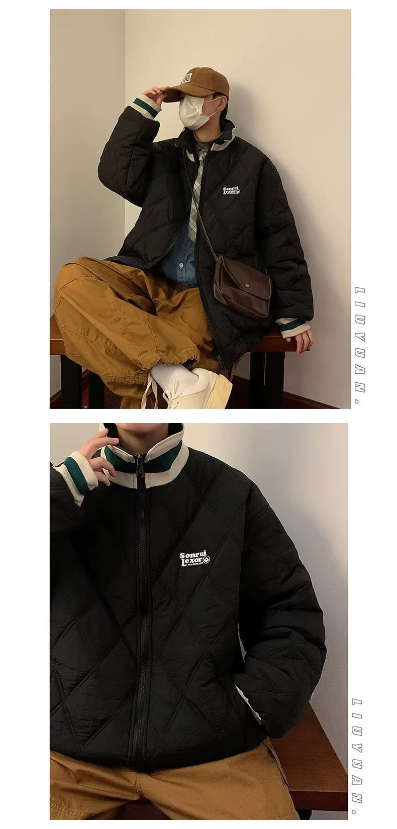 菱形野球パッド入りコートメンズ冬アメリカンスタイルレトロルーズ肥厚綿綿コットンコットンコートストリートトレンディなコート ウィンター 冬物 128512802851418