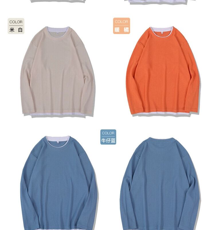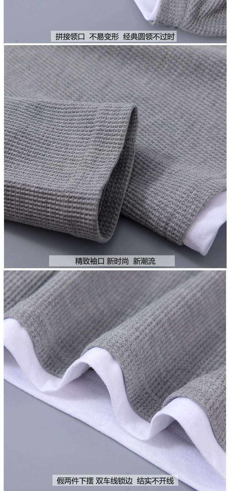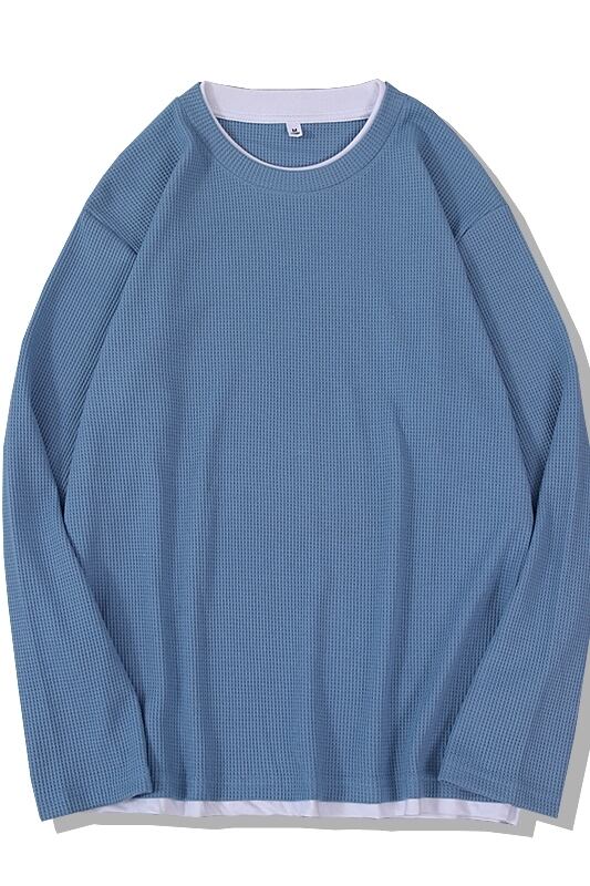 ese ヘビーラウンドネックレトロフェイクツーピースセーターメンズ春秋長袖ジャケットオールマッチプラスサイズワッフルトップ ロング 大きめサイズ スプリング 春物 オータム 秋物 Oネック 1285130917310421