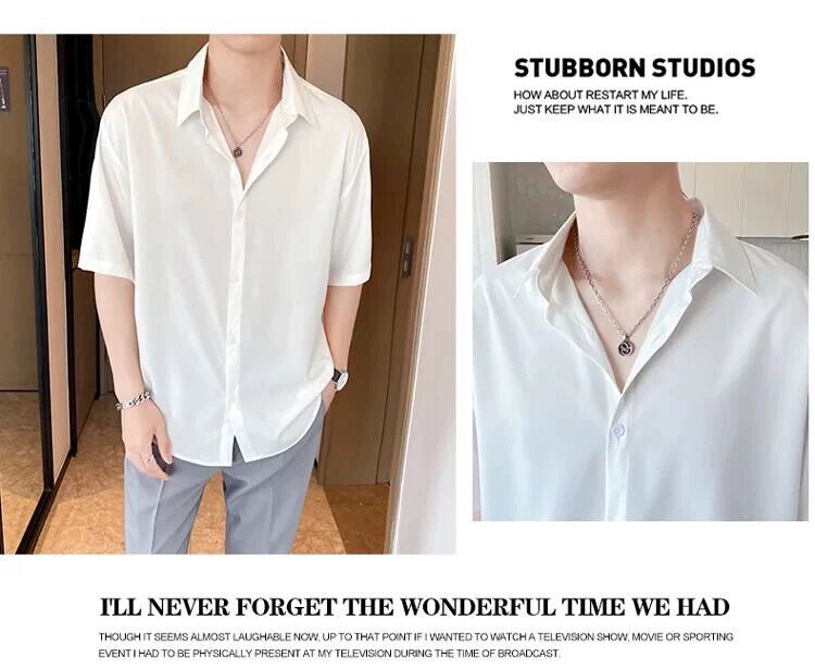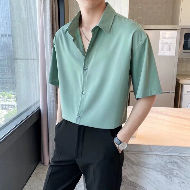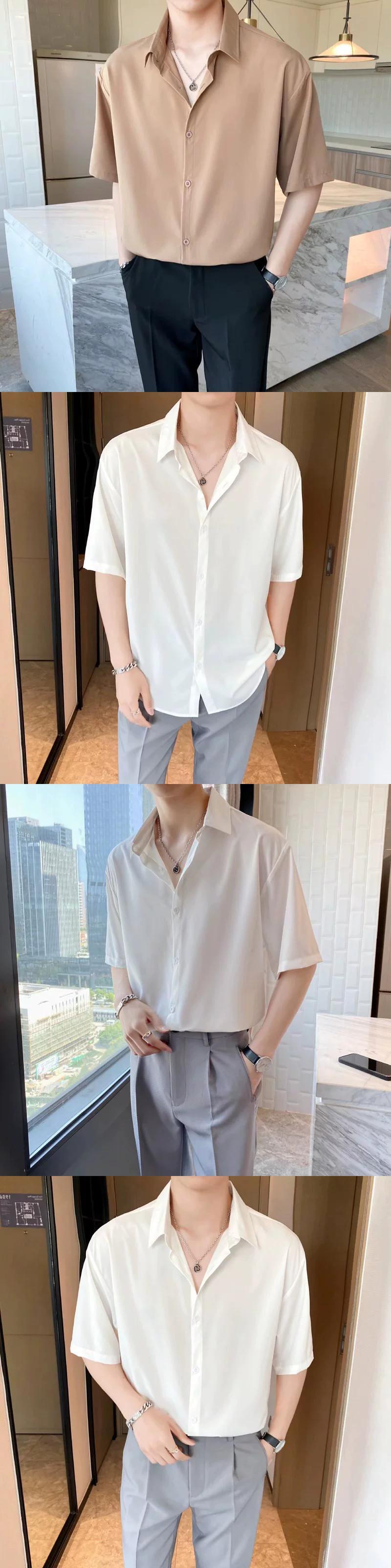 無地半袖シャツメンズ夏軽くて馴染みのあるスタイル紳士服アイスシルクドレープハイレベルアイロンフリービジネス薄手シャツメンズ サマー 夏物 ソリッドカラー 1285123929461042