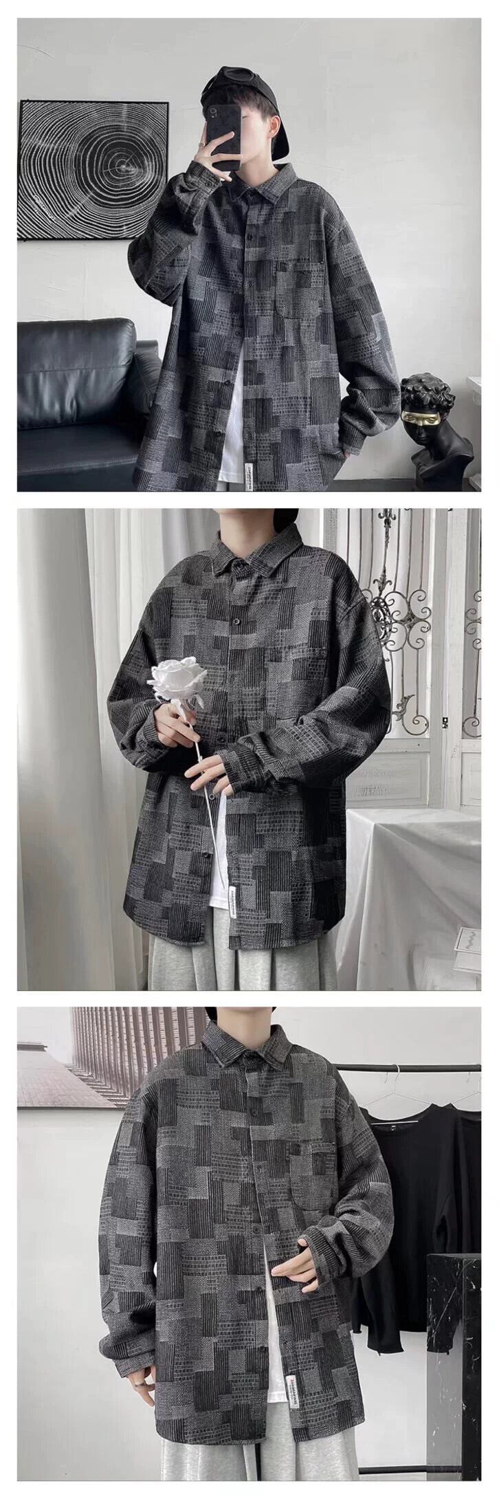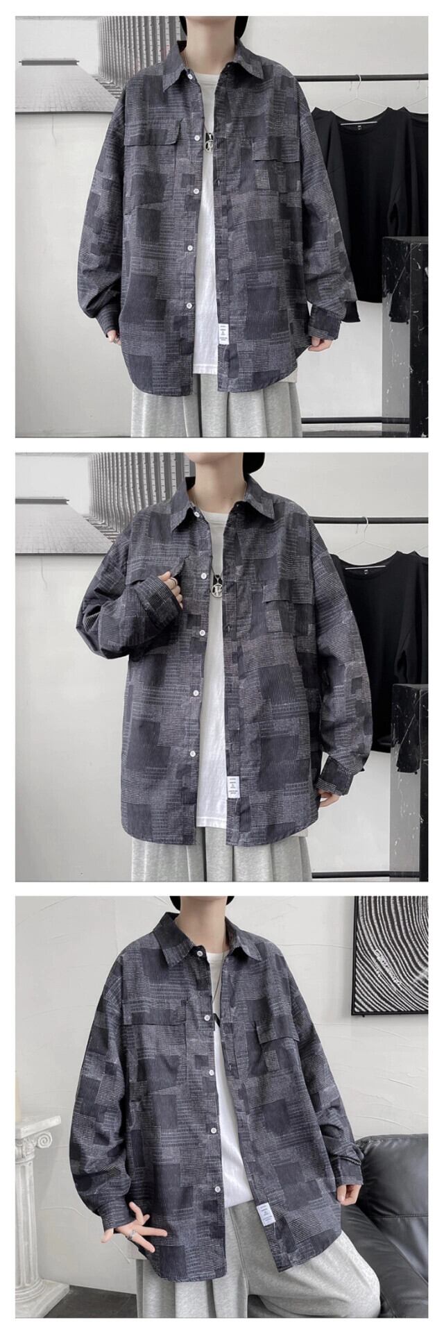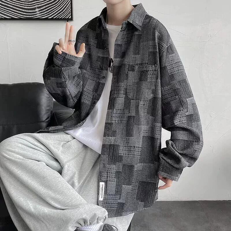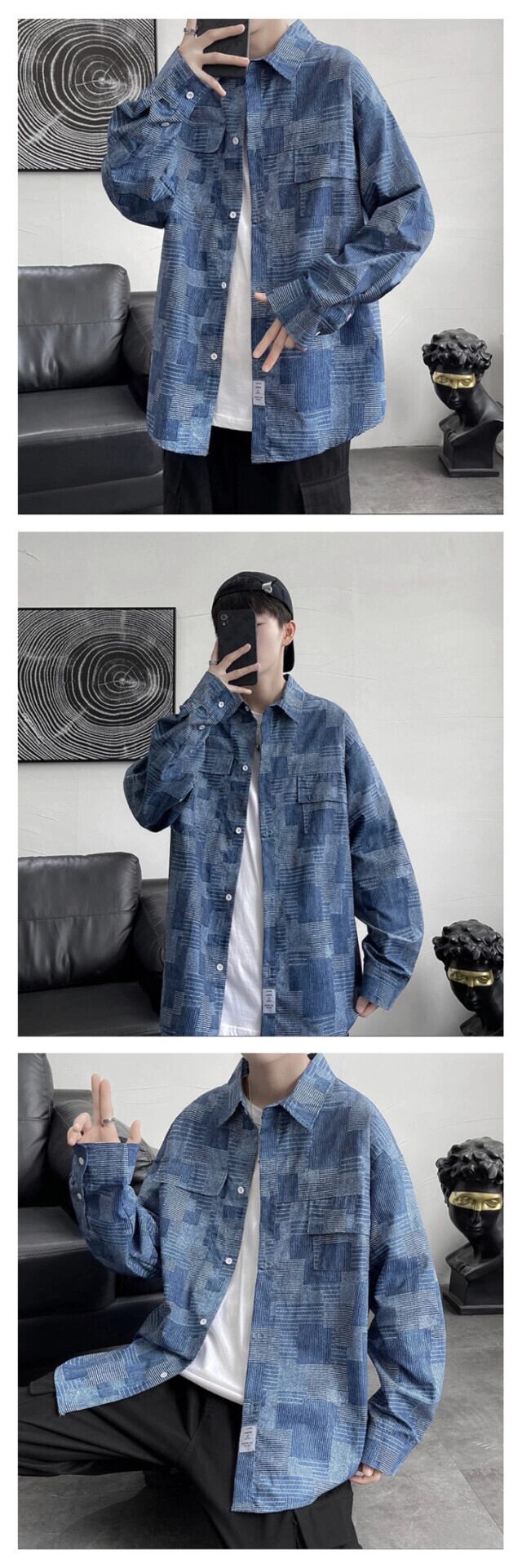 春と秋のチェック柄ツーリングデニム長袖シャツメンズ香港スタイル ese トレンディなハンサムカジュアルジャケットレトロジャケット ロング スプリング 春物 オータム 秋物 1285176242739594