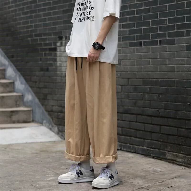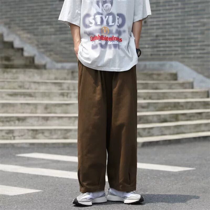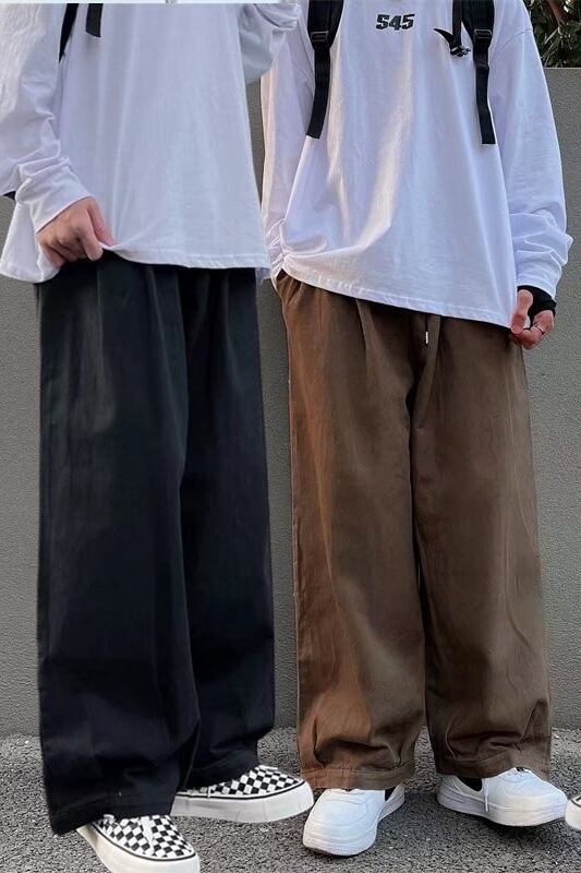香港スタイルインレトロオーバーオールメンズルーズストレートワイドレッグカジュアルパンツ秋のトレンディなブランドならず者ハンサムな9点パンツ オータム 秋物 128519517224799