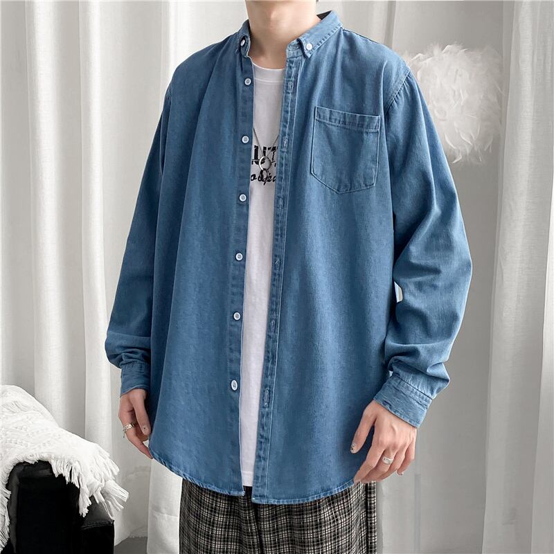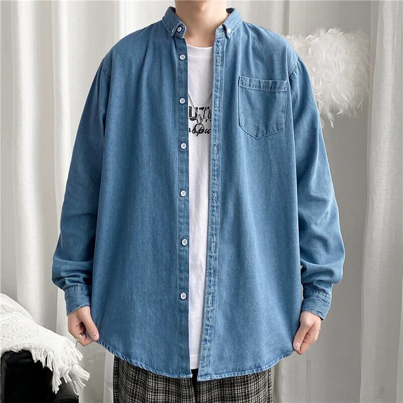 春と秋のレトロな長袖デニムシャツメンズトレンディな香港スタイルのエセスタイルハンサム悪党ハンサムオールマッチツーリングシャツジャケット ロング スプリング 春物 オータム 秋物 1285132099756894