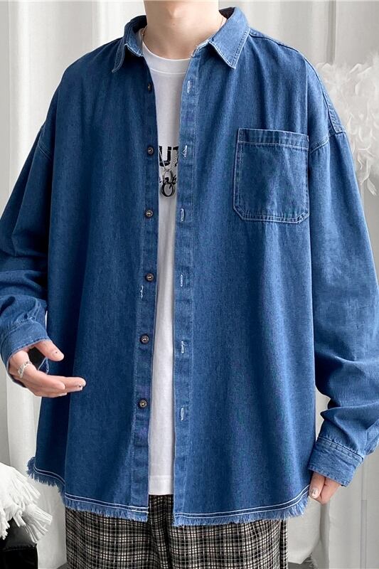 -end ese ワークウェア シャツ メンズ 長袖 秋 ルーズ シャツ トレンド カジュアル デニム ジャケット 服 トレンド ブランド ロング オータム 秋物 1285114576915334