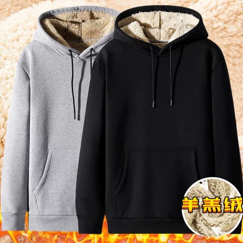 セーターメンズ秋冬ラムベルベットフード付きルーズインプラスベルベット服大きいサイズメンズトップス厚手コート潮 大きめサイズ オータム 秋物 ウィンター 冬物 1285155960554207