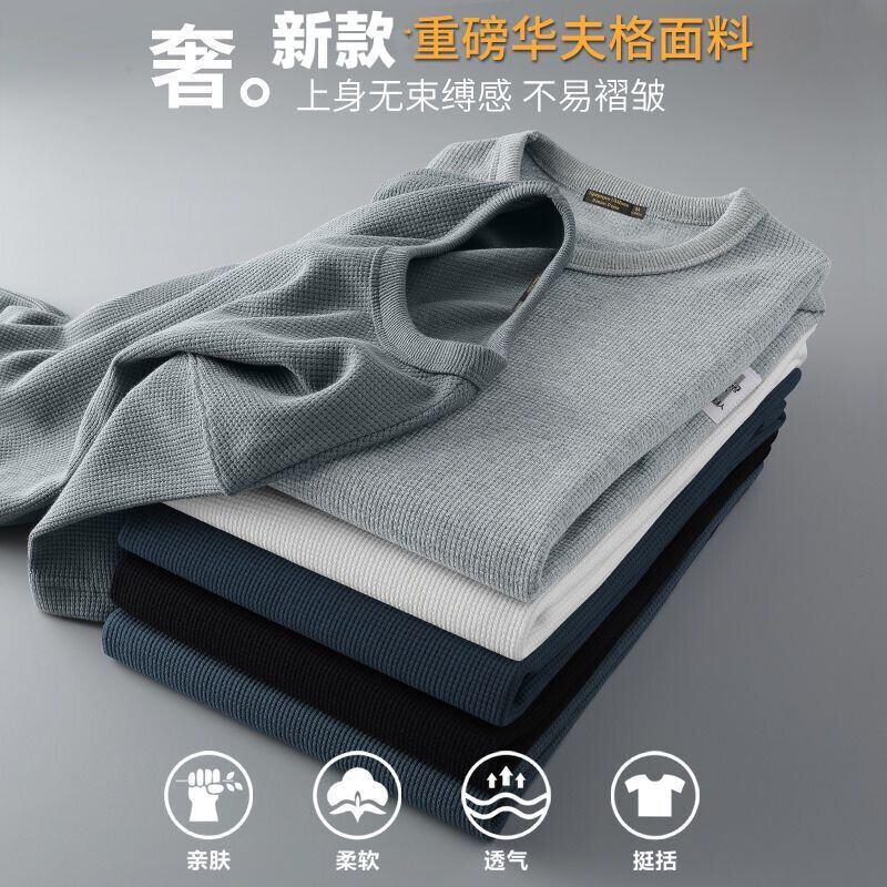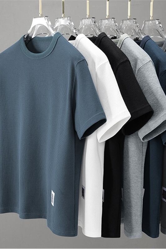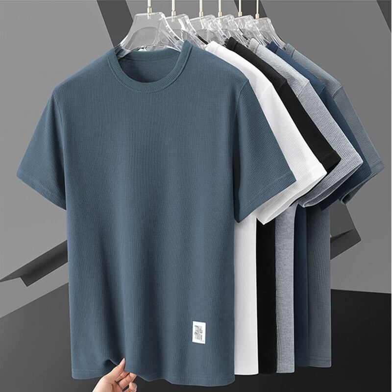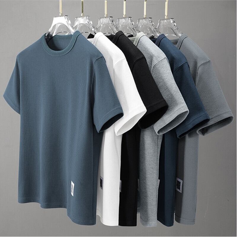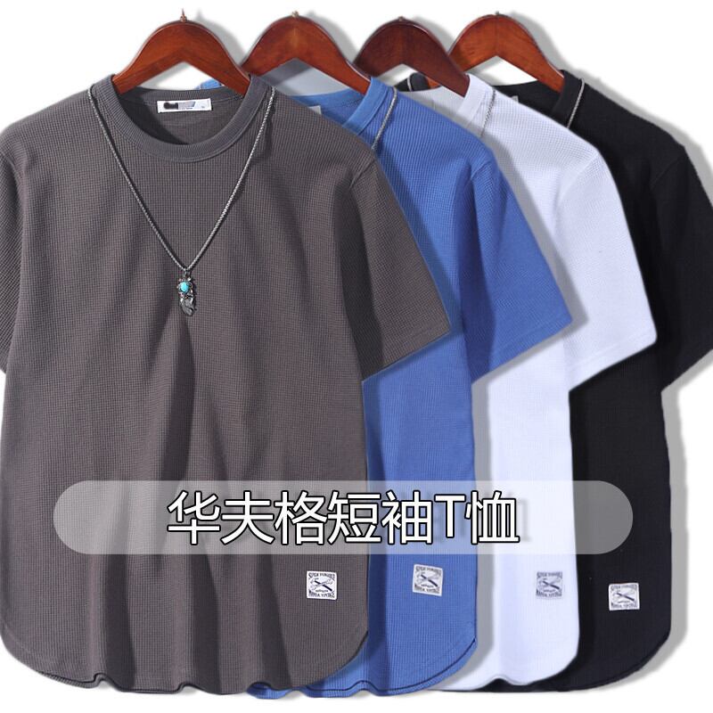 夏ワッフル半袖 Tシャツメンズインルーストレンドブランドラウンドネック服トレンディなオールマッチ香港スタイルシンプルなコンピオネートシャツ サマー 夏物 Oネック 1285174624950434