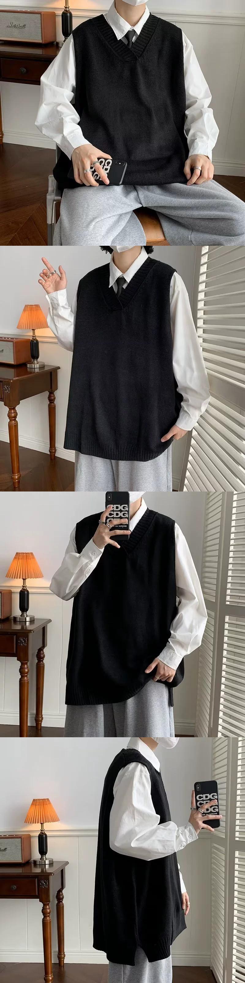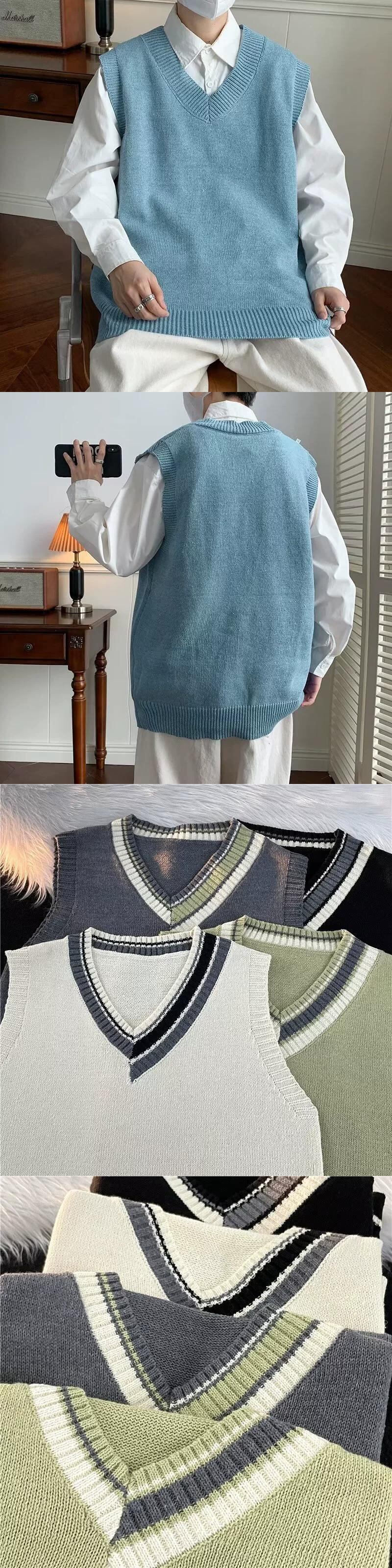 セーター ベスト メンズ シンプル V ネック カレッジ スタイル カップル 秋と冬 ルーズ ニット ベスト ノースリーブ ベスト ショルダー イン潮 オータム 秋物 ウィンター 冬物 Vネック 1285165215262028