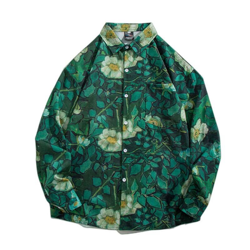 ese レトロ油絵花シャツ男性と女性長袖ルーズヴィンテージ怠惰な風ドレープカップルシャツジャケット ロング フラワーデザイン ビンテージ 128511864483652