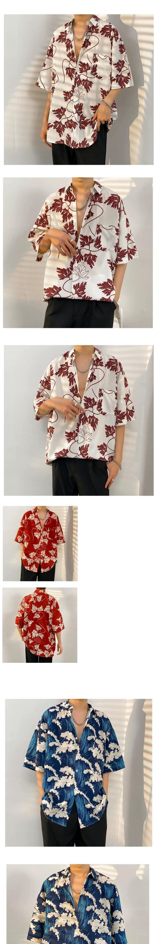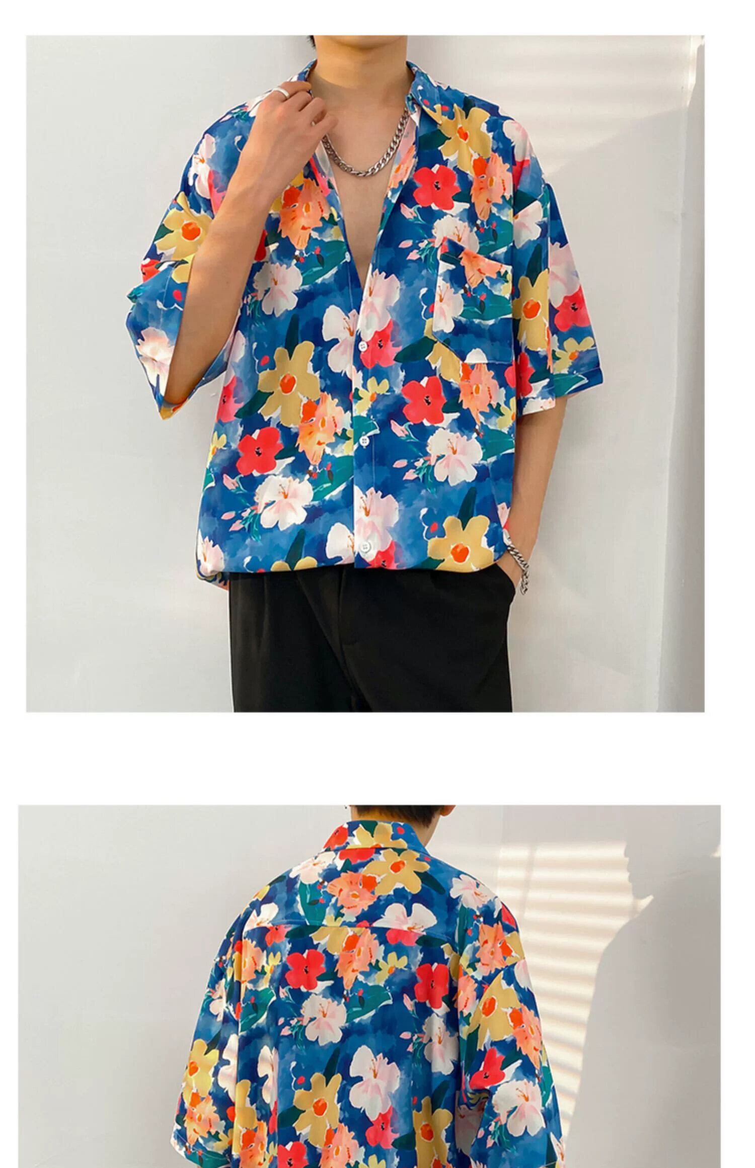 香港スタイル半袖シャツ男性と女性のカップルモデル夏ルーズ薄セクションハワイアンビーチ花柄五分袖フラワーシャツ サマー 夏物 フラワーデザイン 1285197944763598
