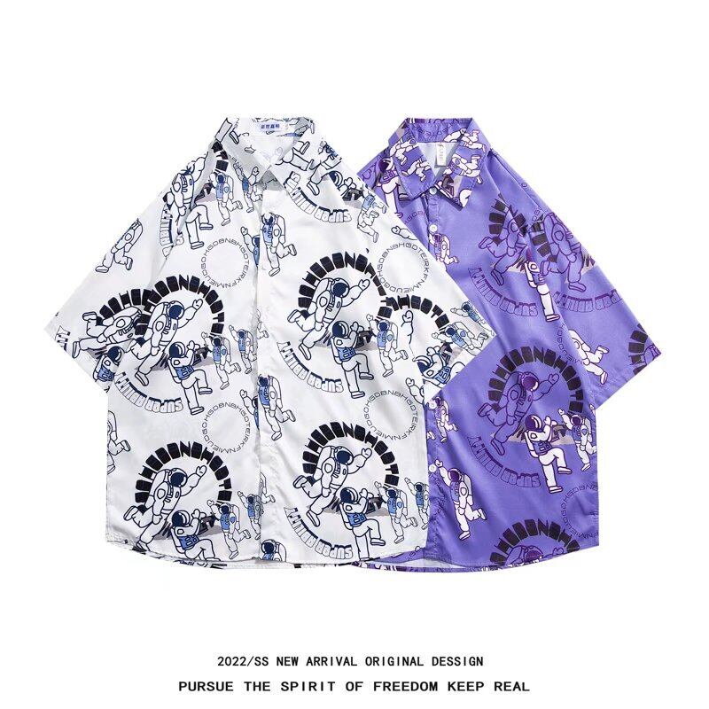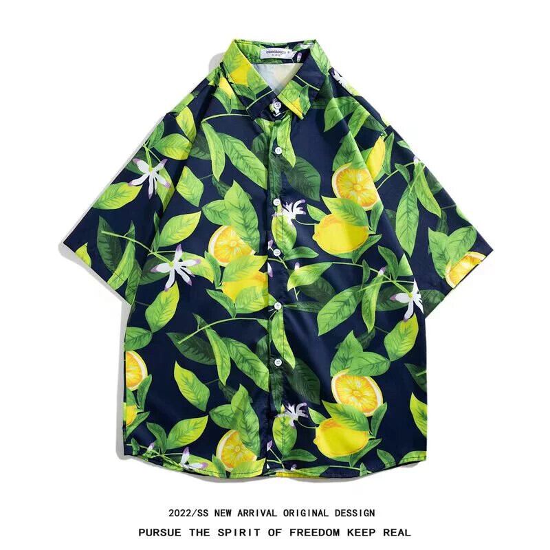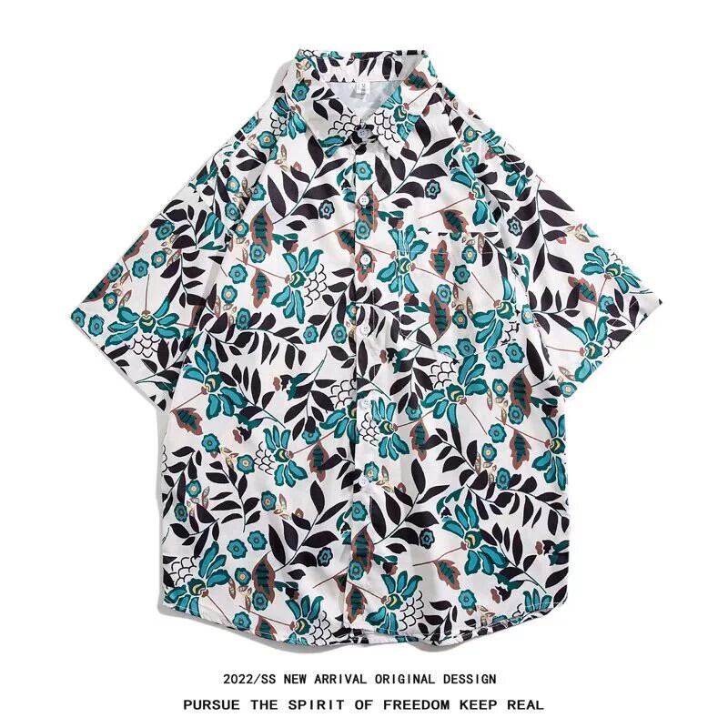 Meichao オーバーサイズフラワーシャツメンズ半袖夏イントレンドオールマッチインチシャツハワイアンビーチウィンドシャツ サマー 夏物 フラワーデザイン 1285196019243514