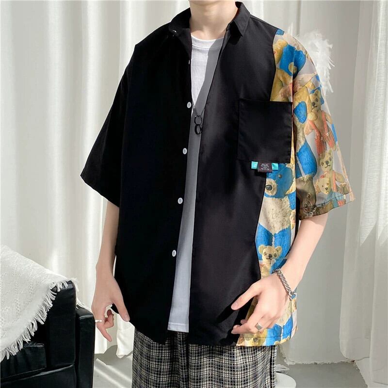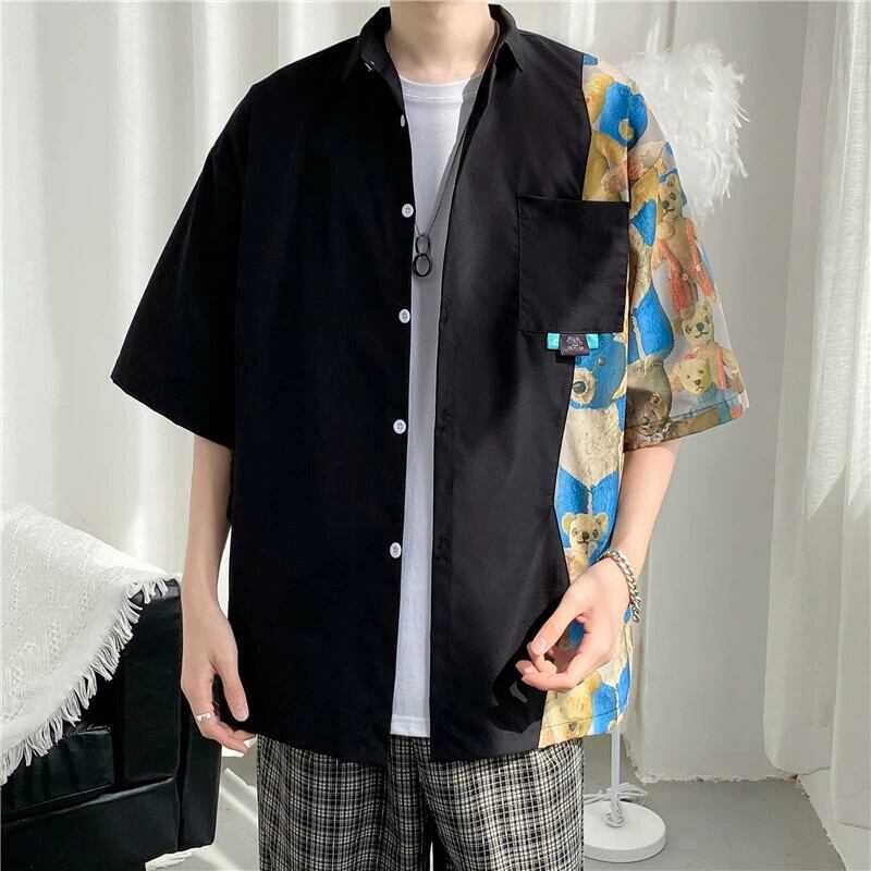 半袖シャツ メンズ デザイン センス ニッチ 夏 薄地ステッチ ラペル バージョン トレンディなボーイズ ティーンエイジャー シャツ ジャケット サマー 夏物 1285182312548449