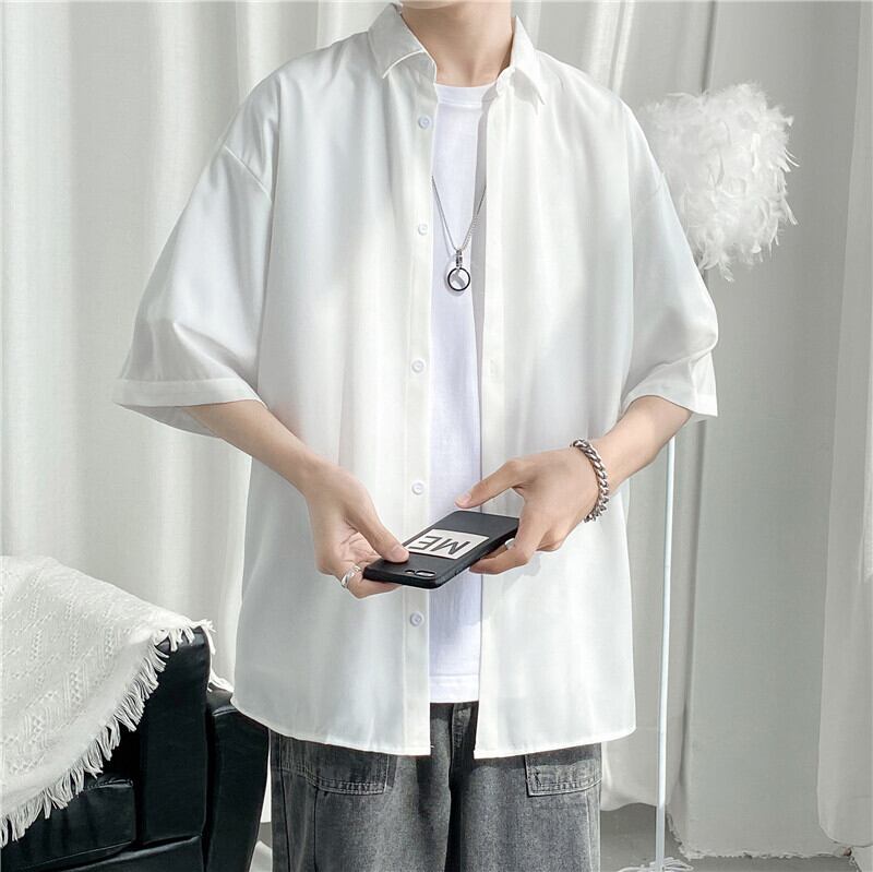 -グレードドレープアイスシルクシャツメンズ夏薄いセクション香港スタイルストリート悪党ハンサムなデザインセンスニッチ半袖シャツジャケット サマー 夏物 1285145313267068