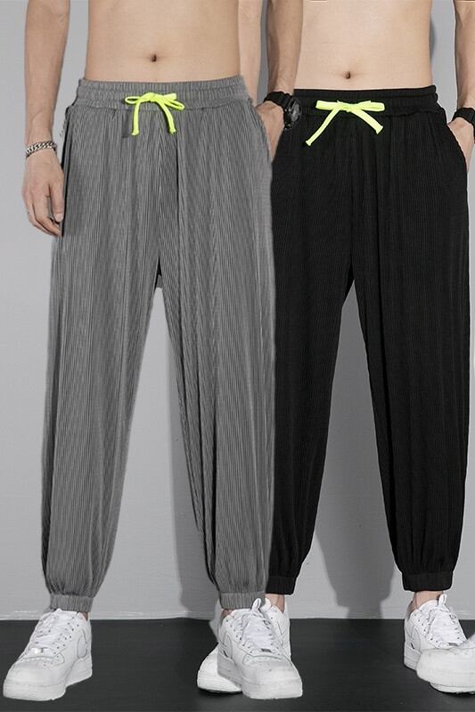 2023 夏の新トレンド男性と女性の同じスタイルのオールマッチ弾性バージョンのネットレッドアイスシルクカジュアルスポーツパンツ エラスティック 伸縮 サマー 夏物 1285173718127505