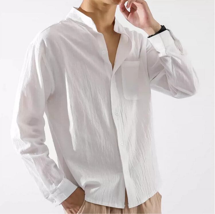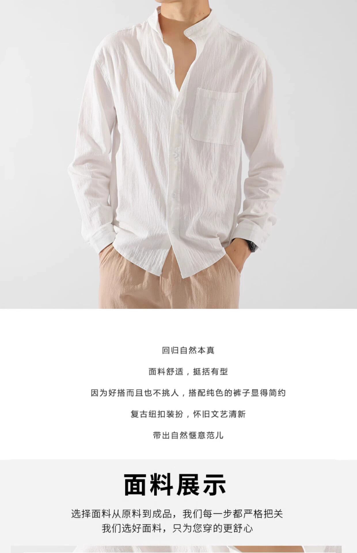 無地長袖シャツメンズ春と秋の薄いカジュアルインチシャツ若者夏ルーズコットンとリネンシャツメンズジャケット ロング スプリング 春物 サマー 夏物 オータム 秋物 ソリッドカラー 1285159262690315