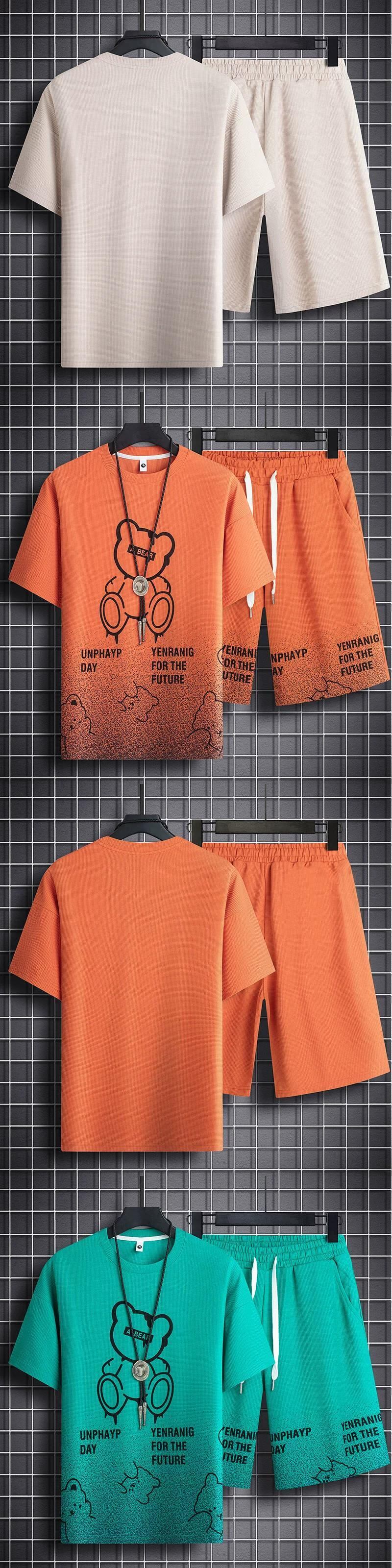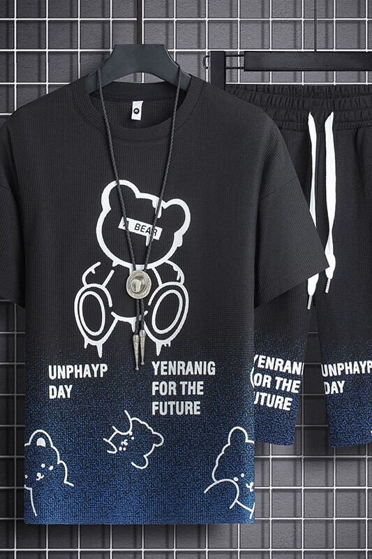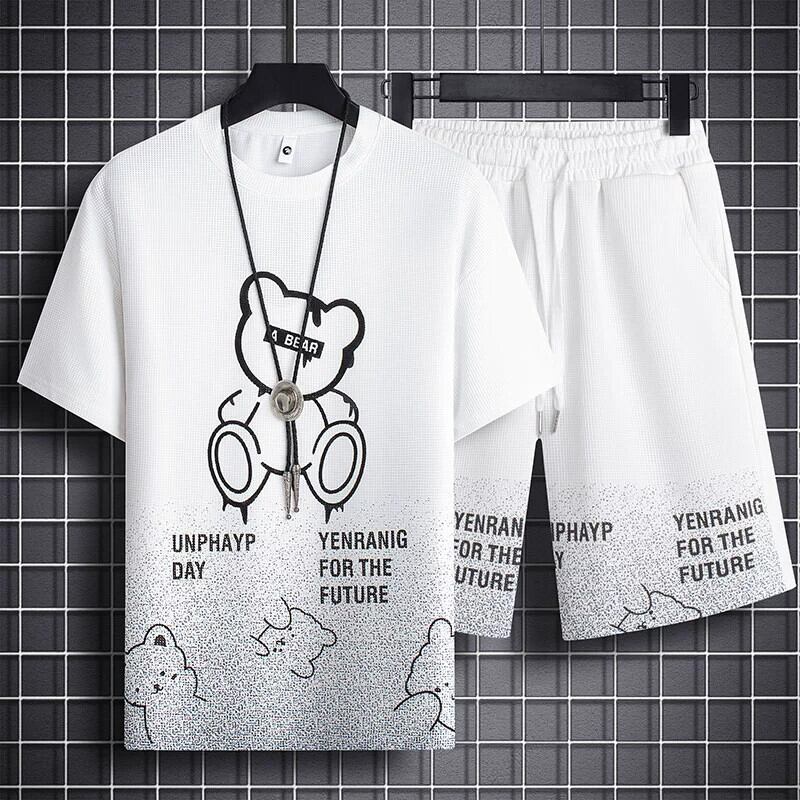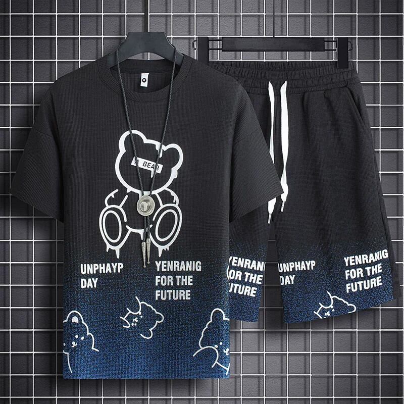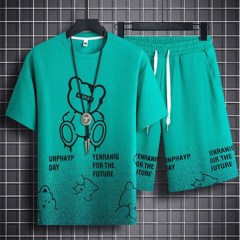 ワッフル半袖男の子クールでハンサムな服装夏カジュアルスポーツ5点ショートパンツトレンド大きいサイズメンズTシャツ 大きめサイズ サマー 夏物 ショーツ ブルマー 1285138703726683