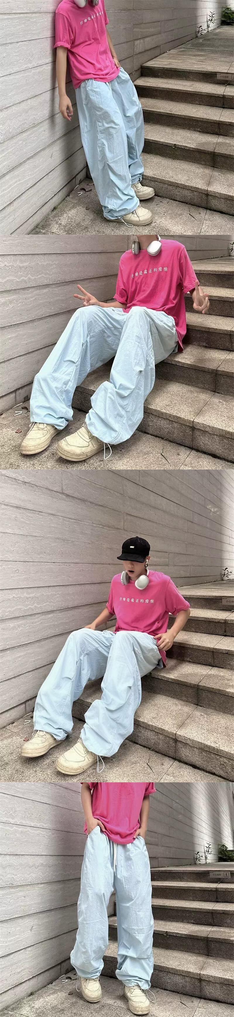 アメリカのハイストリート機能性オーバーオールメンズ、夏のアイスシルクパンツ、トレンディなスポーツアウトドア速乾性カジュアルパラトルーパーパンツ サマー 夏物 1285118634438373