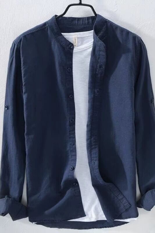 コットンとリネンのシャツメンズ半袖シャツルーズメンズ中国風の夏薄いセクションメンズカジュアルジャケット長袖トップ ロング サマー 夏物 128511088926080