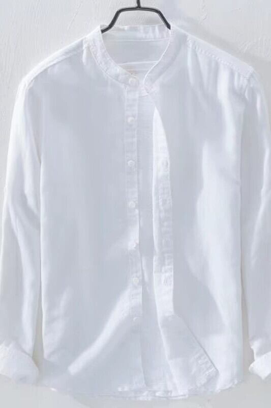 ビーチ通気性白長袖リネンシャツメンズ薄型スリムリネンルーズ日焼け止めコットンとリネンシャツ ロング ホワイト 1285170783417385