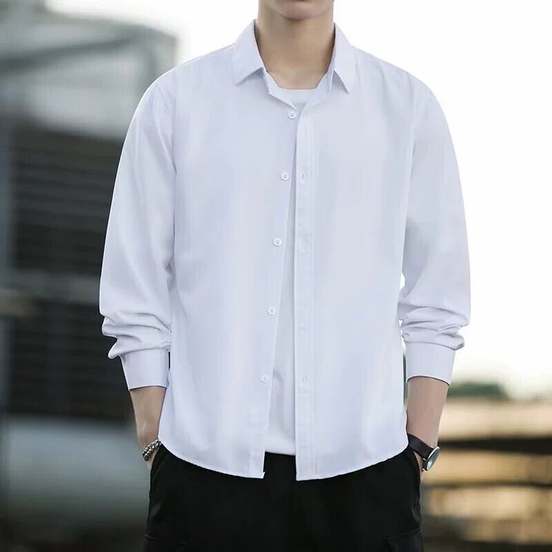 春と秋の長袖とドレープの無地シャツ、ビジネスプロフェッショナルファッションワークシャツ、カジュアルで汎用性の高いボトムスシンプルな1インチシャツ ロング スプリング 春物 オータム 秋物 ソリッドカラー 1285147799701269