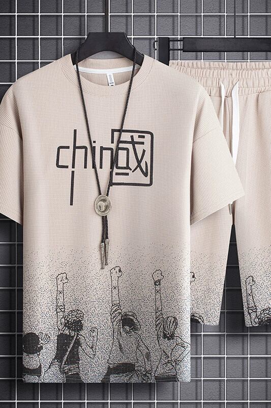 ワッフルナショナルタイドスーツボーイズ半袖Tシャツカジュアルスポーツショーツ中国風夏プラスサイズの服 大きめサイズ サマー 夏物 ブルマー 1285166840666348