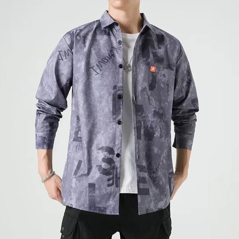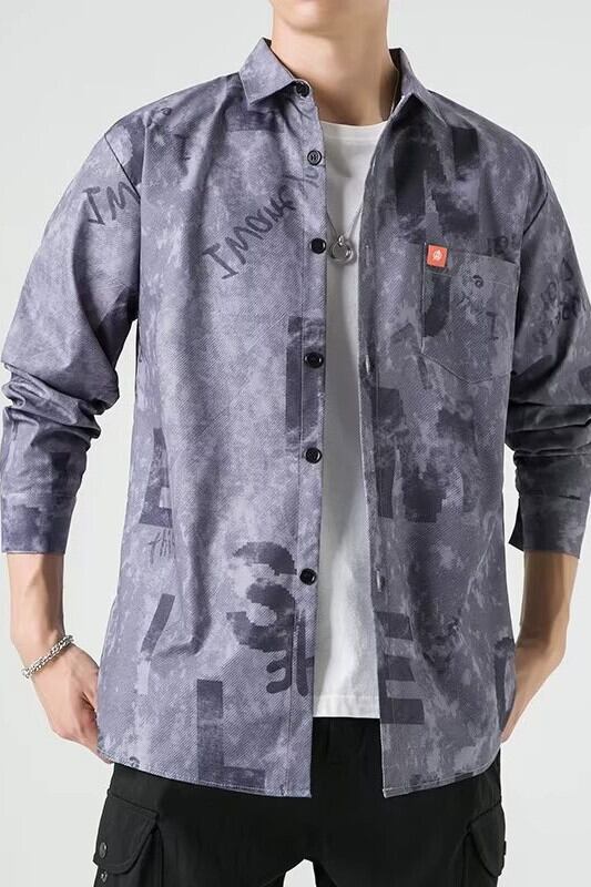 インタイダイ長袖シャツメンズ秋の新カップルルーズフラワーカーディガンシャツ男性ならず者ハンサムカジュアルジャケット ロング オータム 秋物 フラワーデザイン 1285152994761620