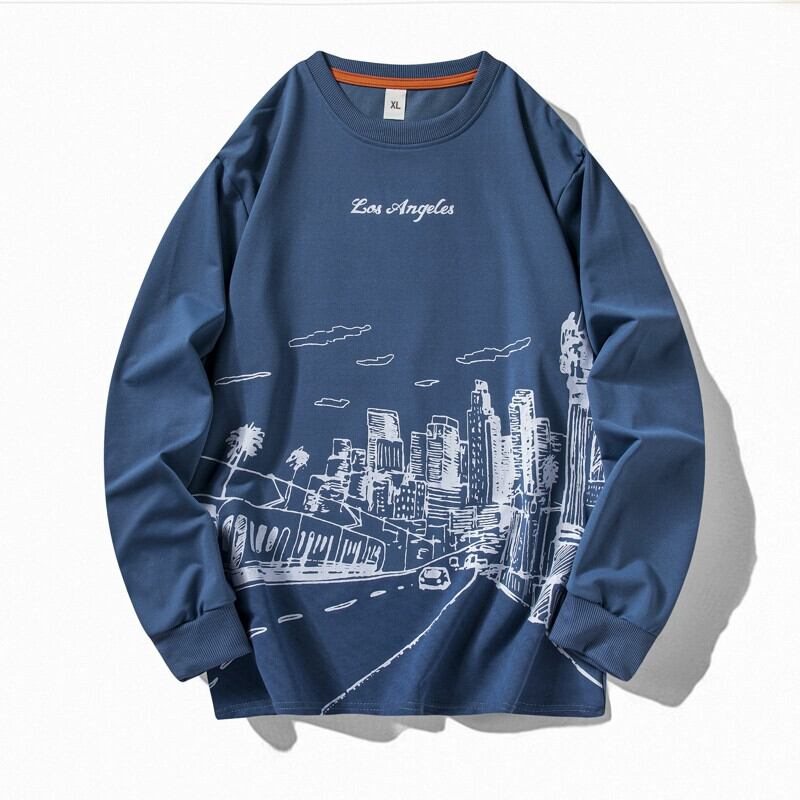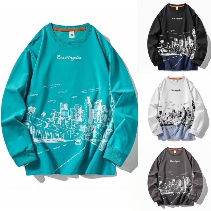 春と秋のアメリカのトレンディなブランドのスウェットシャツメンズ、ゆったりと多用途、カジュアルなフードなしラウンドネック、若者のファッション長袖Tシャツ ロング スプリング 春物 オータム 秋物 Oネック 1285163135423904