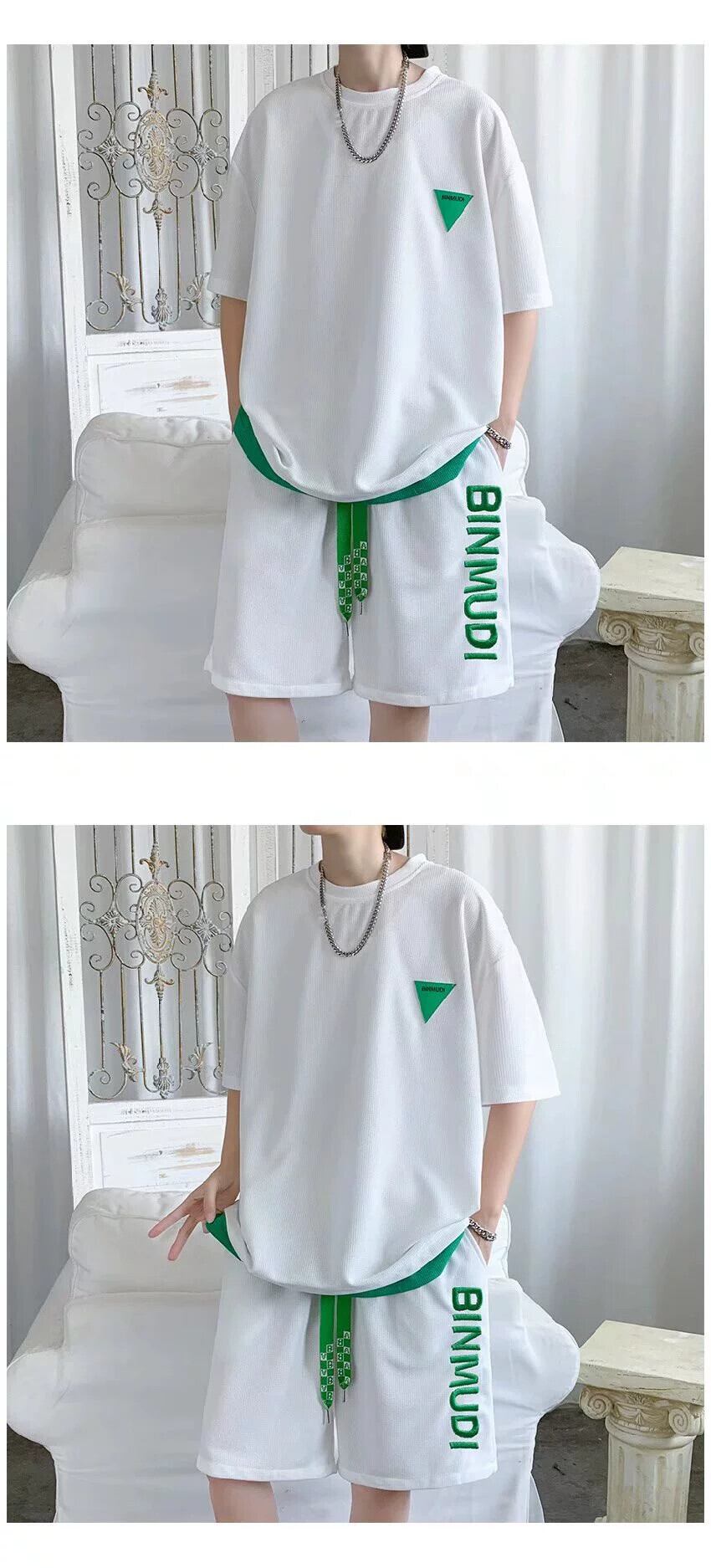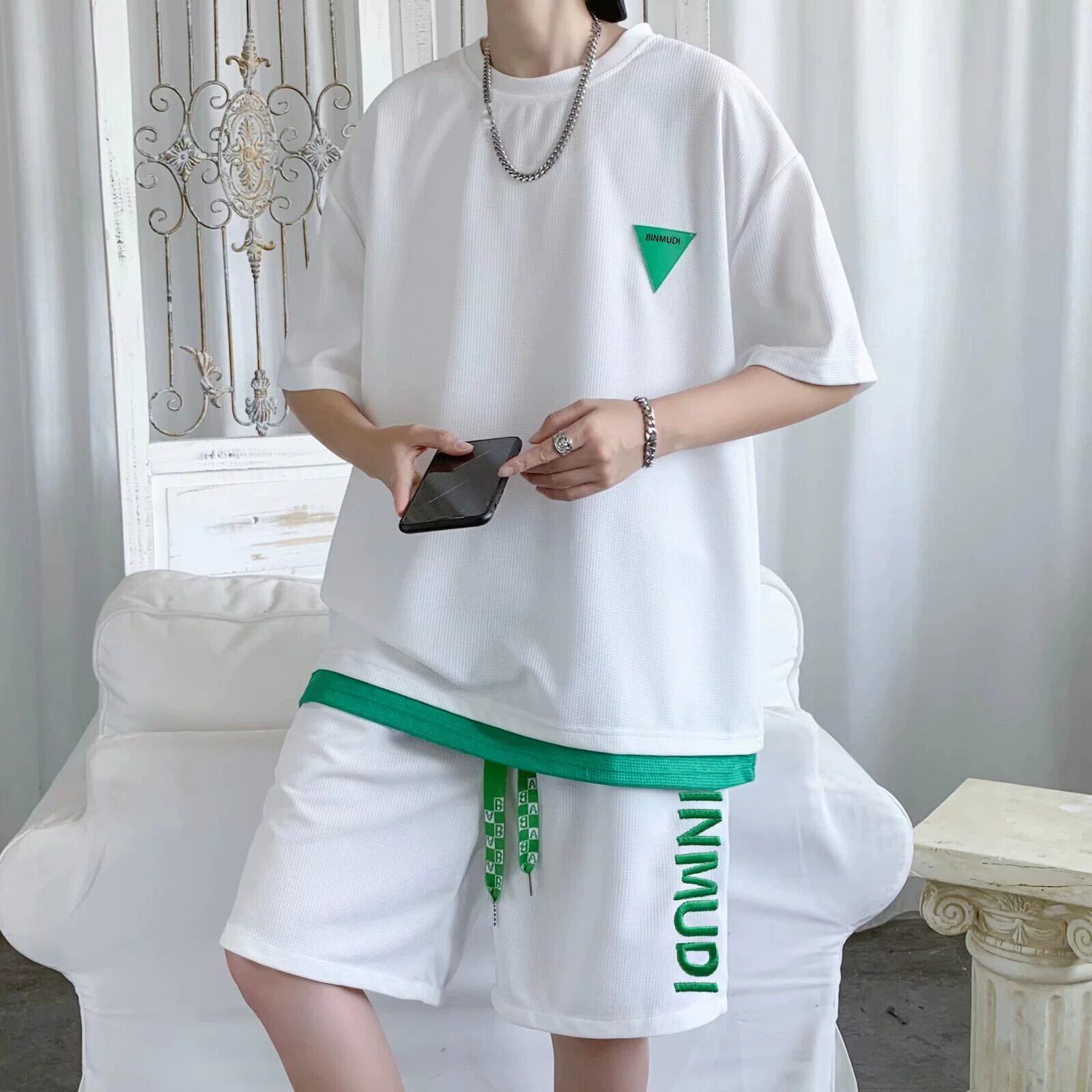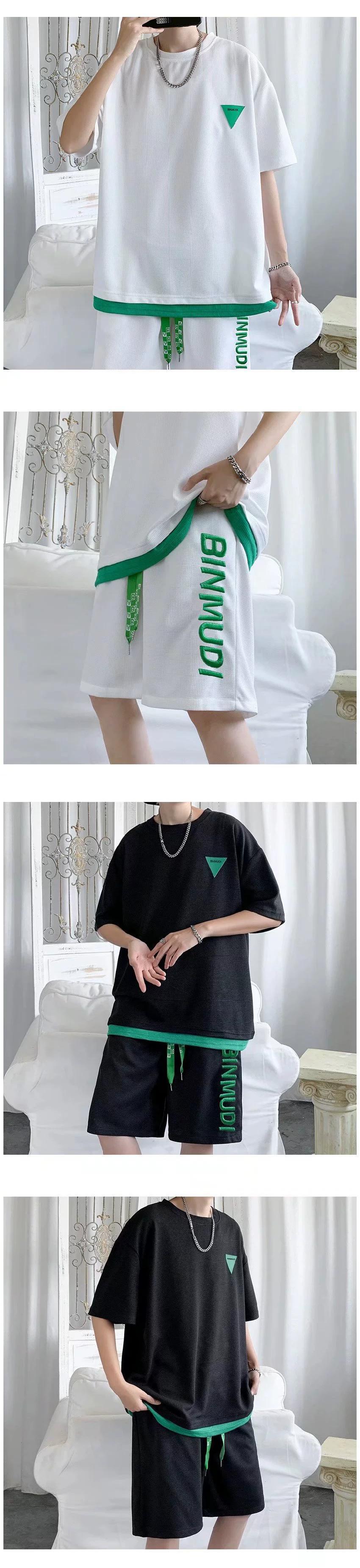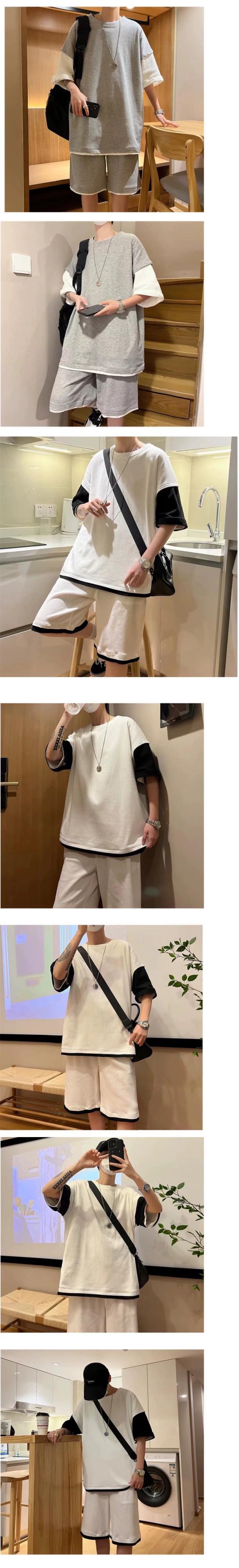 ワッフル半袖 T シャツ ショーツ スーツ メンズ サマー スポーツとレジャー マッチング メンズ ルーズ アイス シルク ツーピース スーツ 夏物 ブルマー Tシャツ 1285140986379320