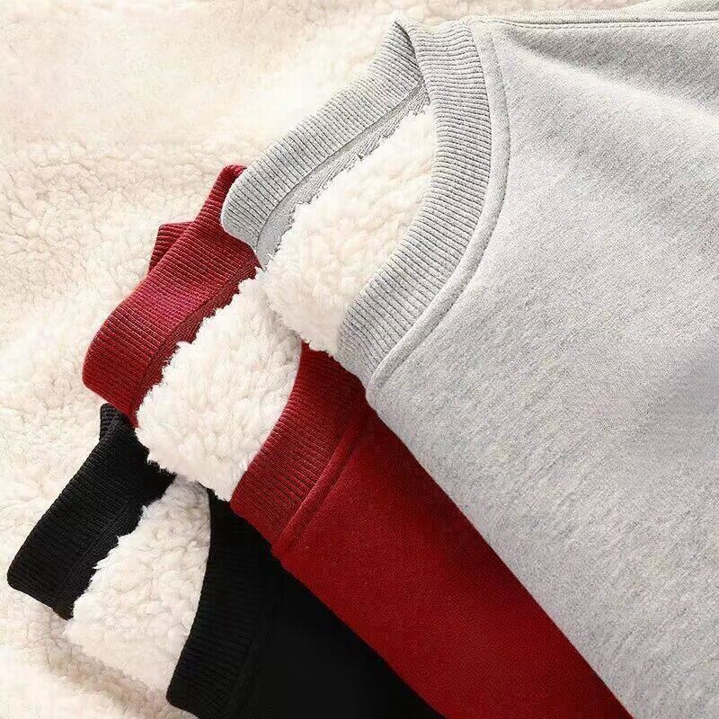 秋冬の厚手のフード付きスウェットシャツの男性と女性に、ベルベットと厚みのある新しいラウンドネックの暖かいスウェットシャツジャケット中学生と高校生 オータム 秋物 ウィンター 冬物 Oネック 1285146057235200