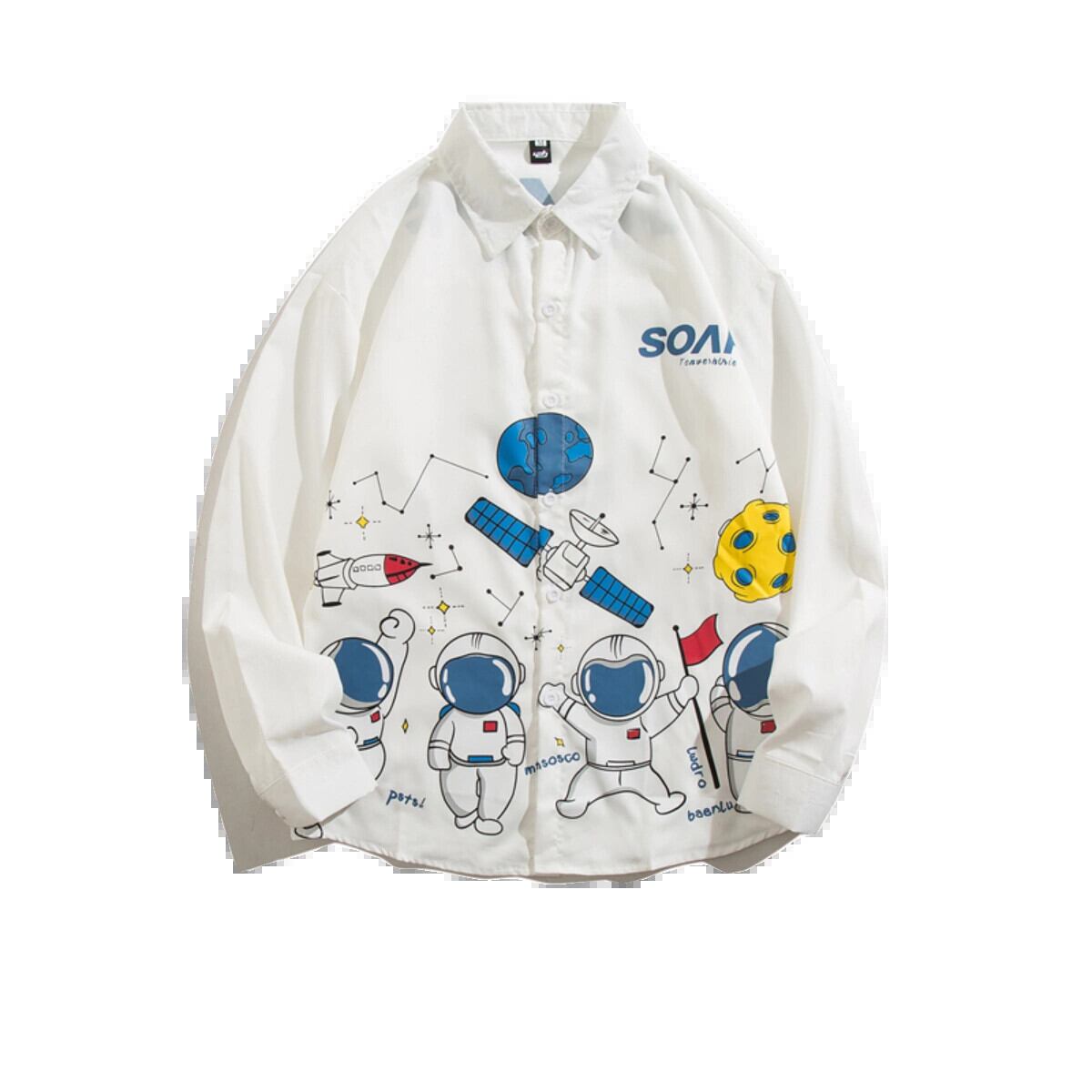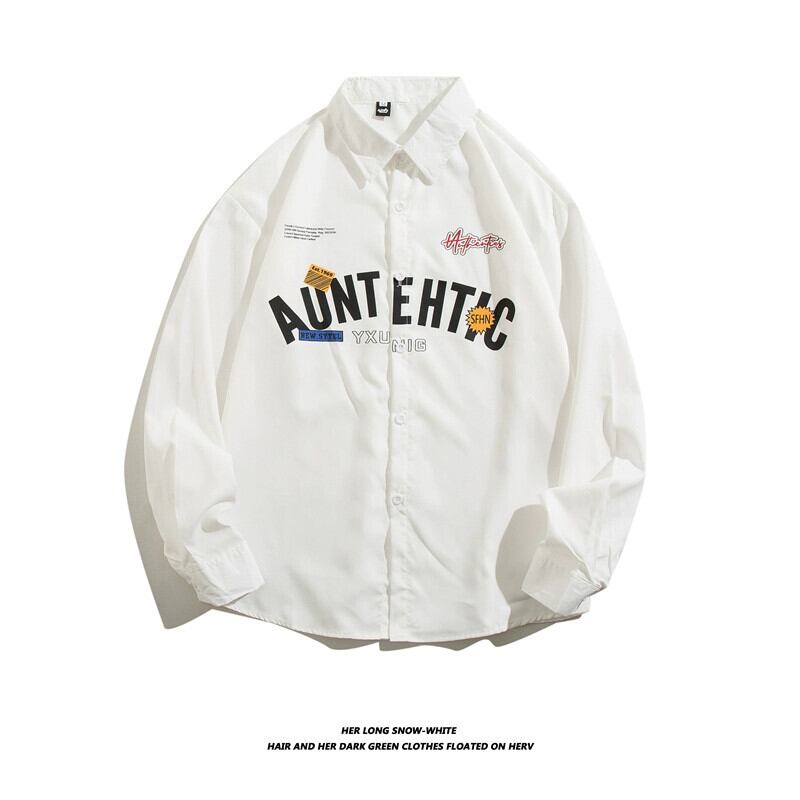 春と秋の漫画プリントシャツメンズ香港スタイルインスエセスタイルルーズ長袖シャツスタイルトレンディな学生トップ ロング スプリング 春物 オータム 秋物 1285172949106417