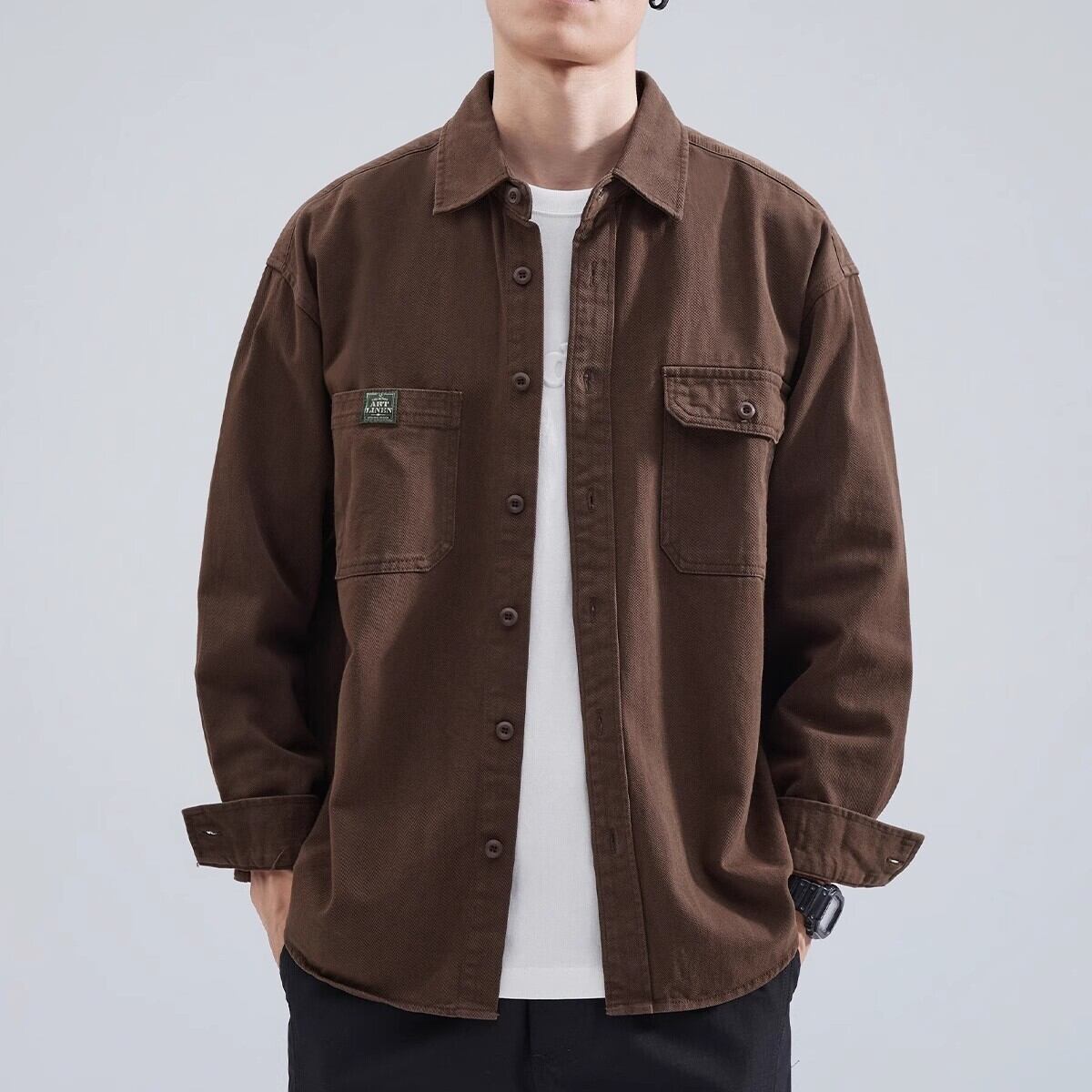 レトロワークシャツジャケットメンズ春と秋カジュアルエセ綿シャツルーズジャケット耐摩耗性作業服冬 コットン スプリング 春物 オータム 秋物 ウィンター 冬物 1285155175720974