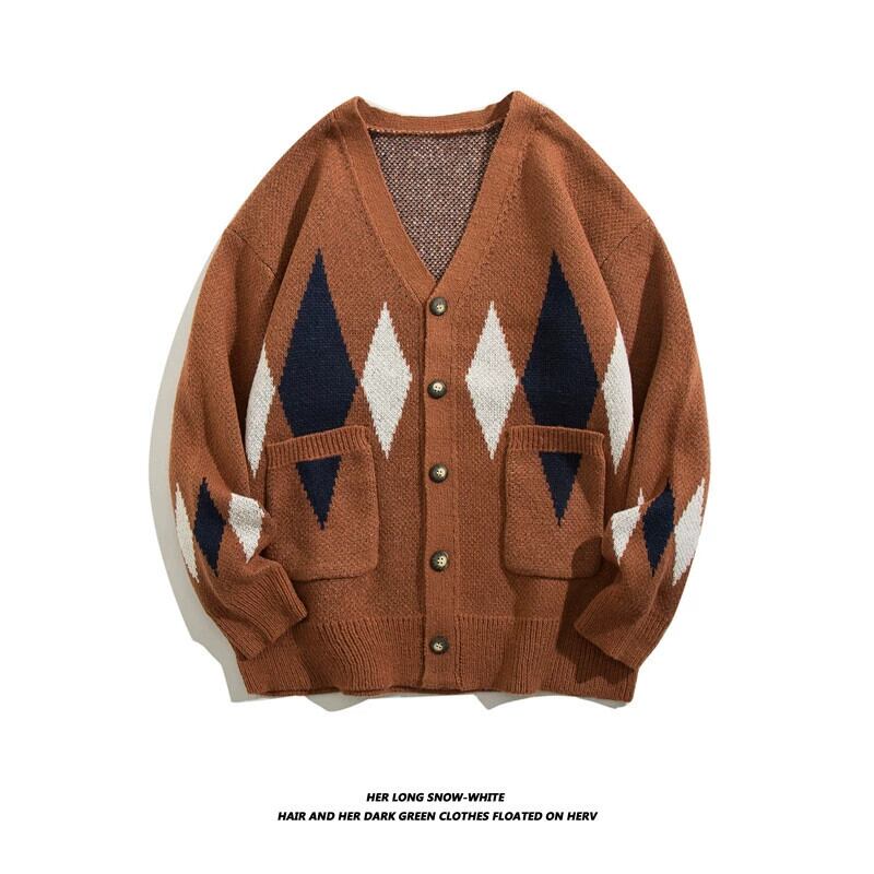 スプライスニットカーディガンジャケットユース2023秋冬トレンディブランドトレンディルーズセーターメンズ怠惰なスタイルの服 オータム 秋物 ウィンター 冬物 1285123838984918