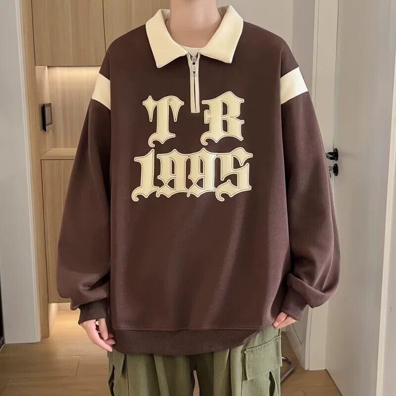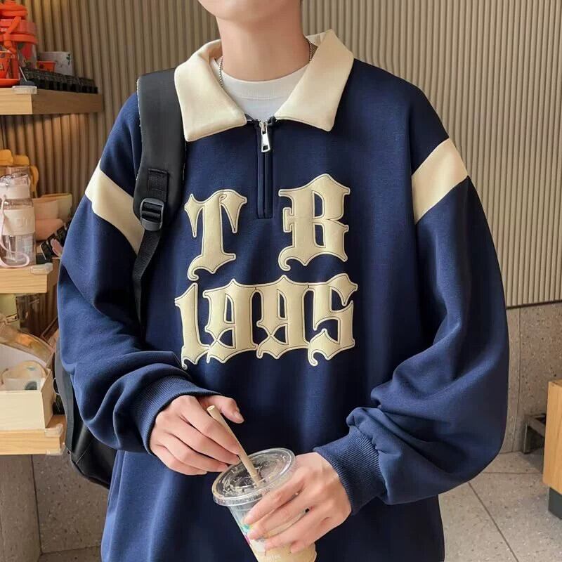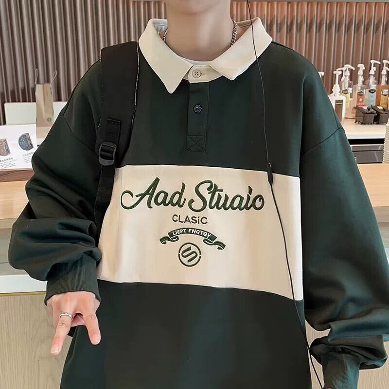 春と秋の新作スウェットシャツポロ襟長袖ティーンエイジャー中高生ハンサムボトムスシャツトップス紳士服 ロング スプリング 春物 オータム 秋物 1285199256670997