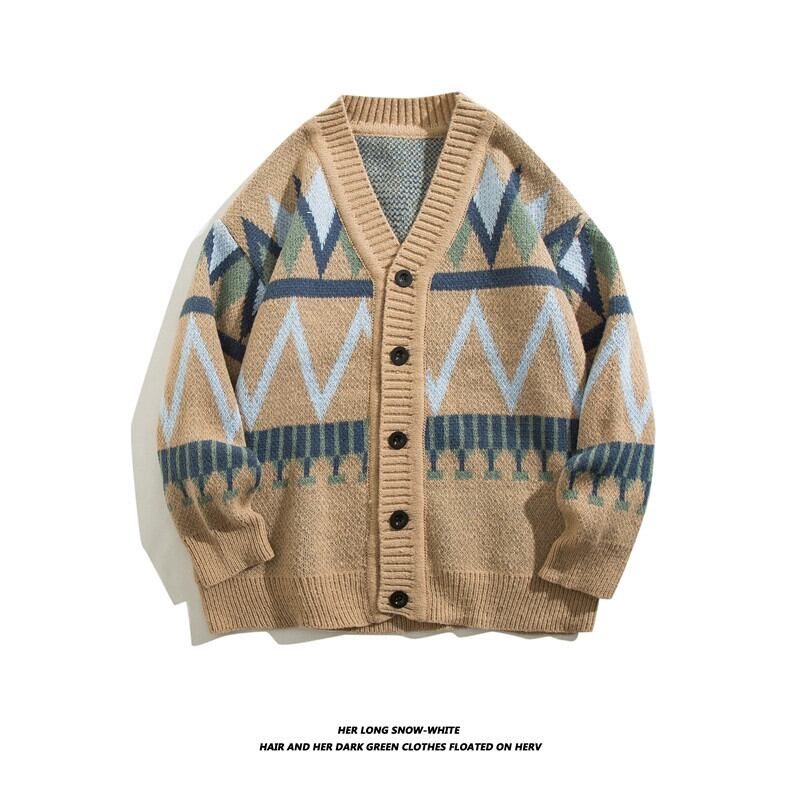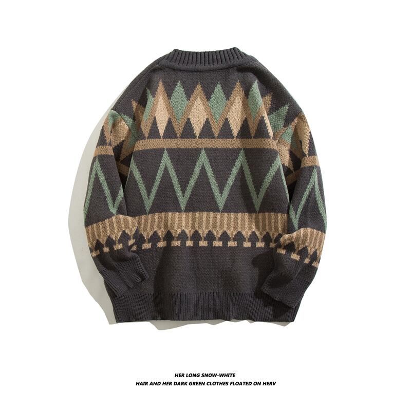 ese レトロな秋と冬のエスニックスタイルセーター中国風カーディガンスタイルカジュアル V ネックネットレッドセーターメンズジャケット オータム 秋物 ウィンター 冬物 Vネック 1285147524157655