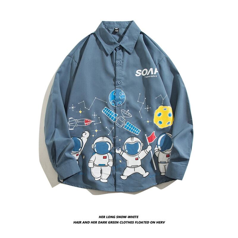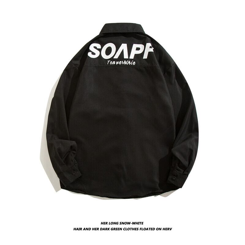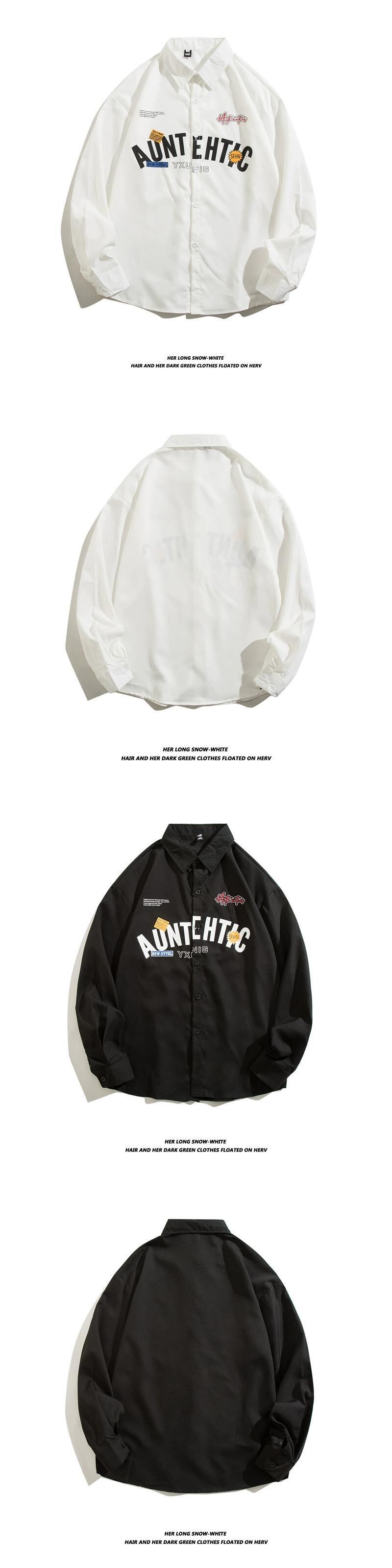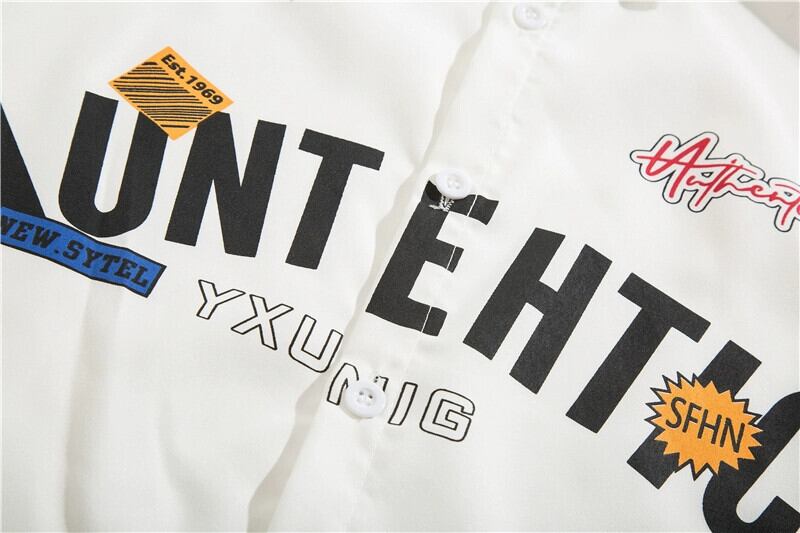 シャツメンズトレンディなブランドの春と秋の新しい香港スタイルのこれらの長袖ラペル文字プリント白のトレンディなシャツ ロング ホワイト スプリング 春物 オータム 秋物 1285112240815713