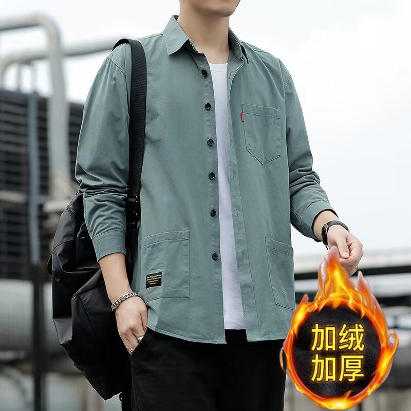 ソリッドカラーのメンズ長袖シャツ、秋冬のベルベットの厚みのあるトップス、ワークシャツ、カジュアルで暖かく多用途なジャケットメンズ ロング オータム 秋物 ウィンター 冬物 128517170306263