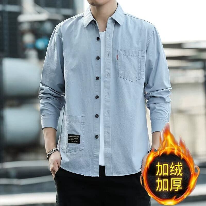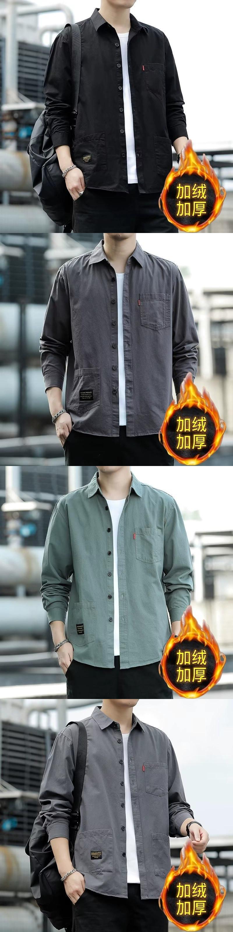メンズシャツ、作業服、長袖ジャケット、無地秋冬の緩い作業服、カジュアルな厚みのあるベルベットシャツ、トレンディ ロング オータム 秋物 ウィンター 冬物 ソリッドカラー 1285150149544635