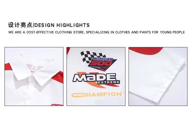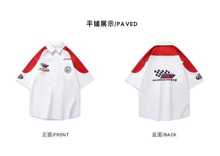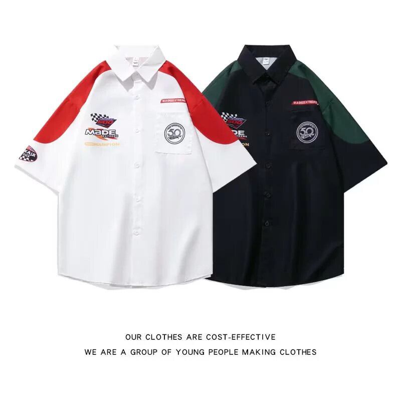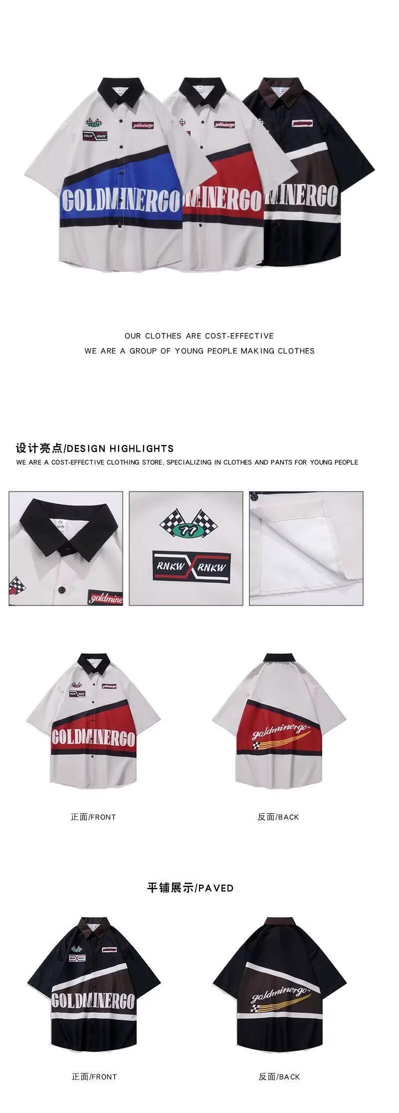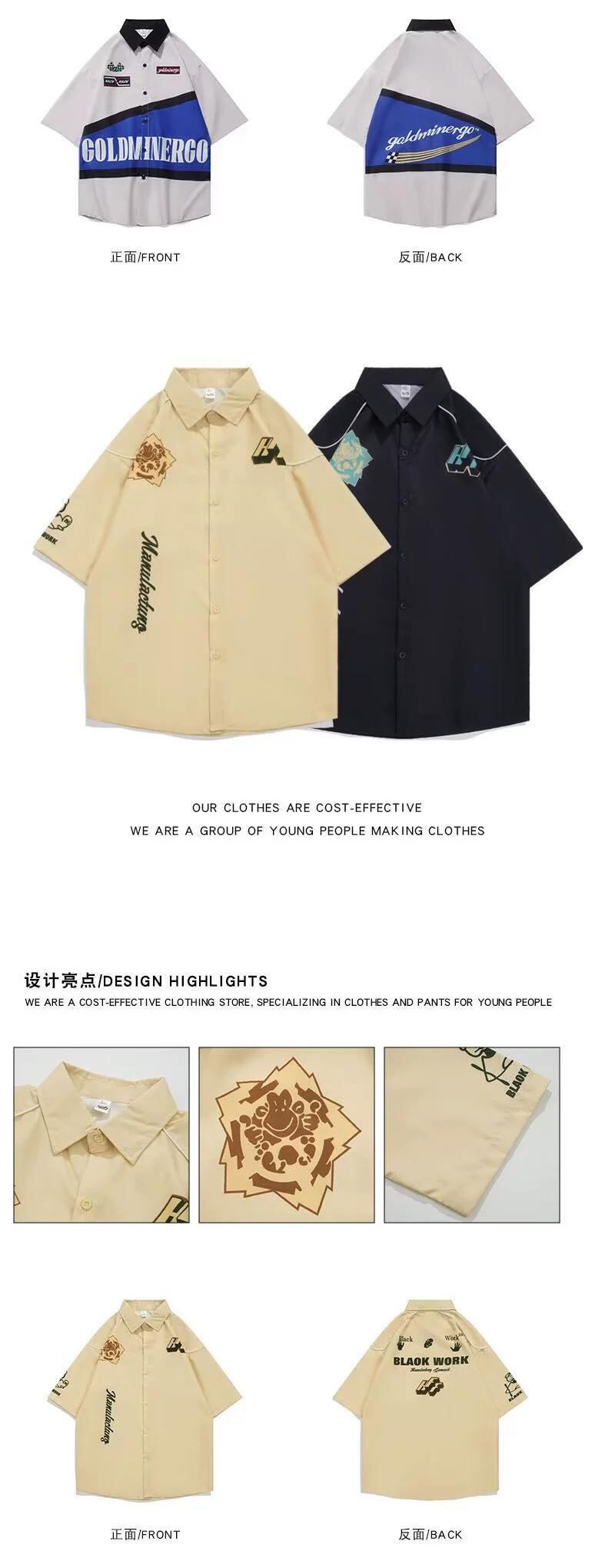 夏アメリカンストリートレタープリントオートバイ半袖シャツメンズレトロヒップホップルーズBFカジュアルニッチシャツ サマー 夏物 1285192975268940