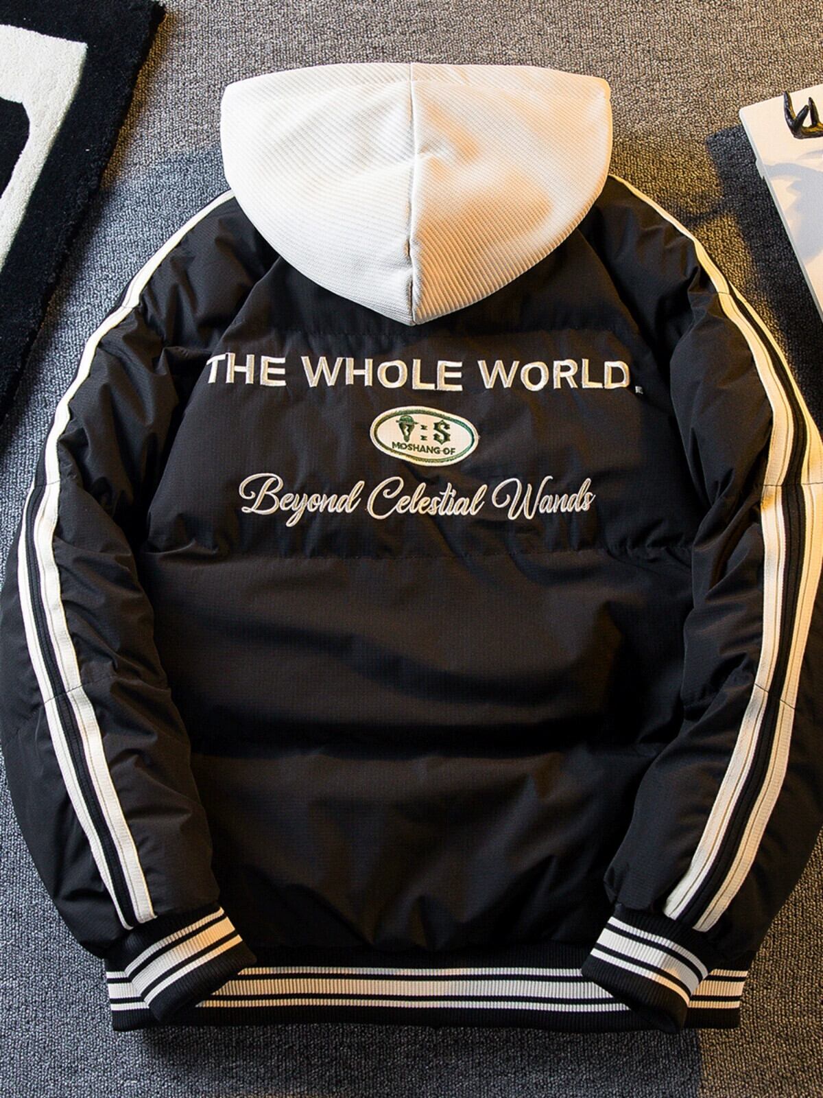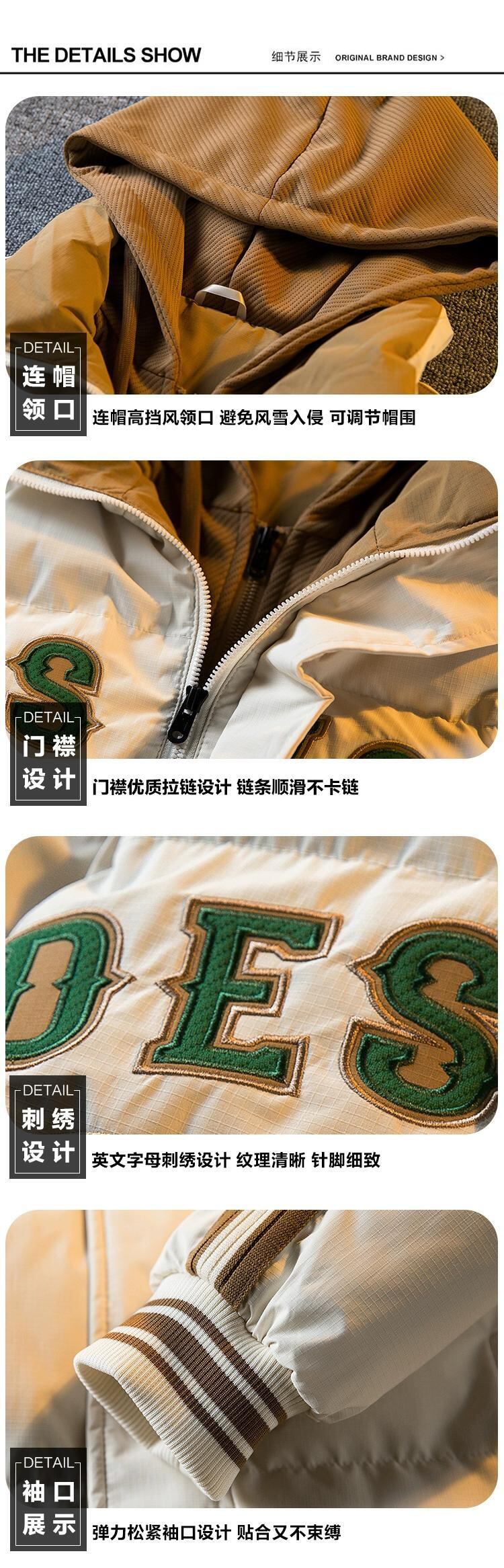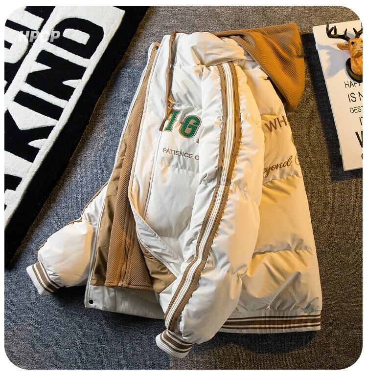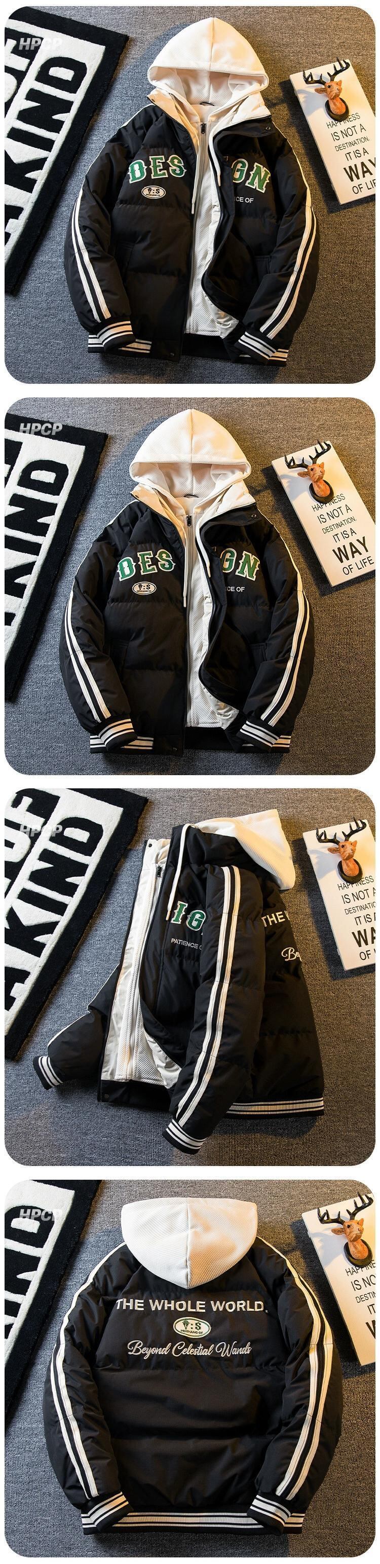 Hengpai トレンディなアメリカのトレンディなブランド偽ツーピース綿のジャケットの男性の秋と冬肥厚フード付き綿のジャケット野球ユニムジャケット男性 コットン オータム 秋物 ウィンター 冬物 3381930266733761