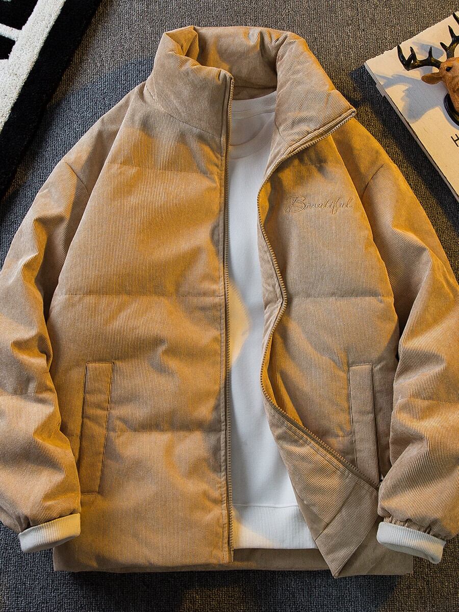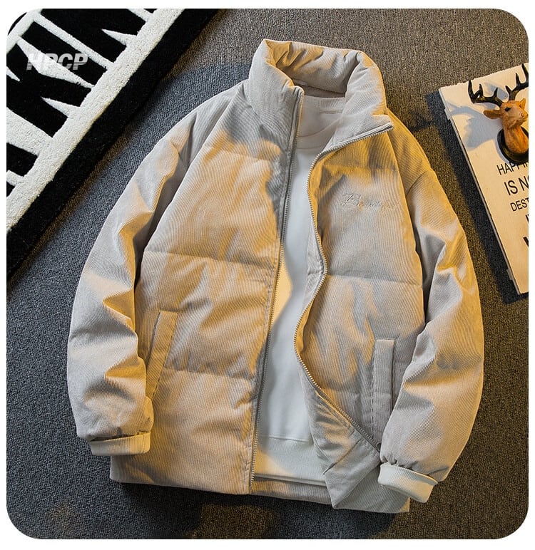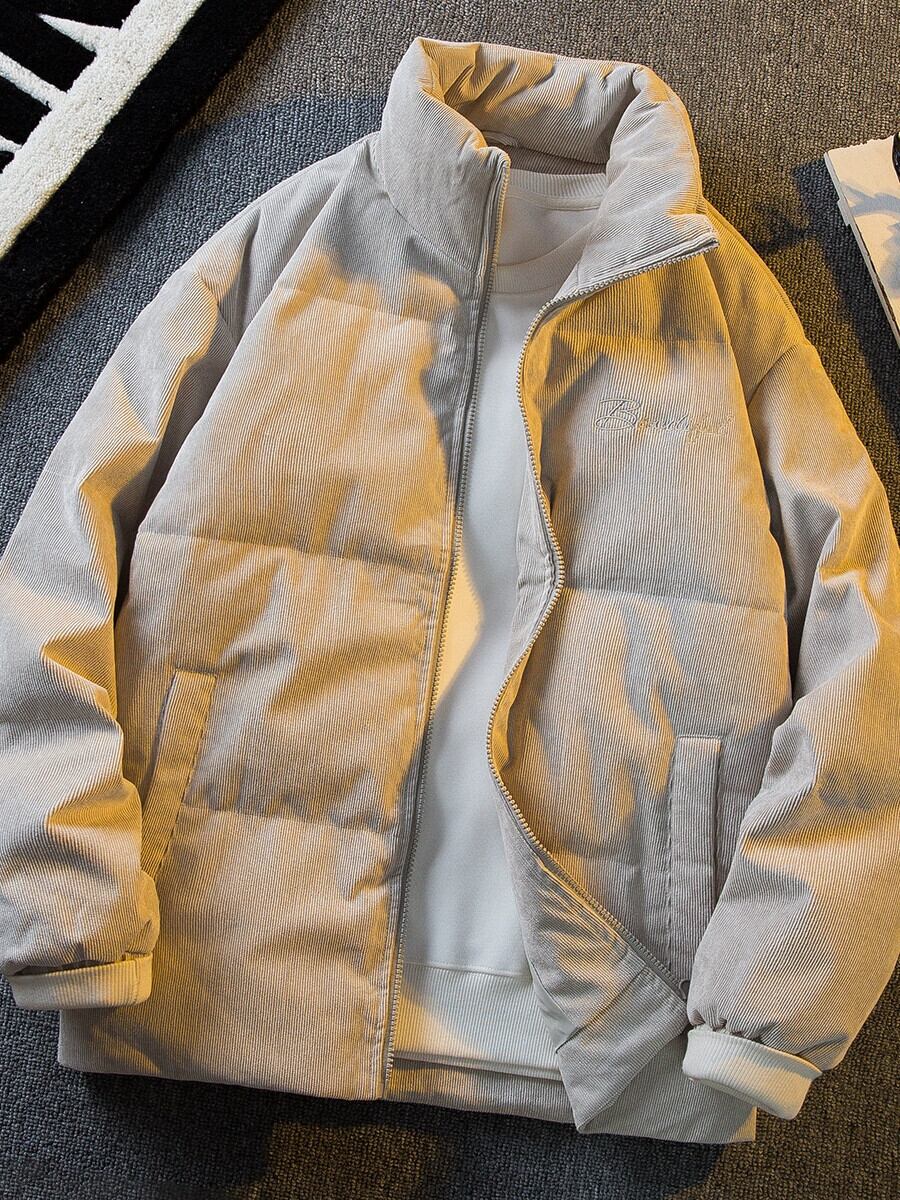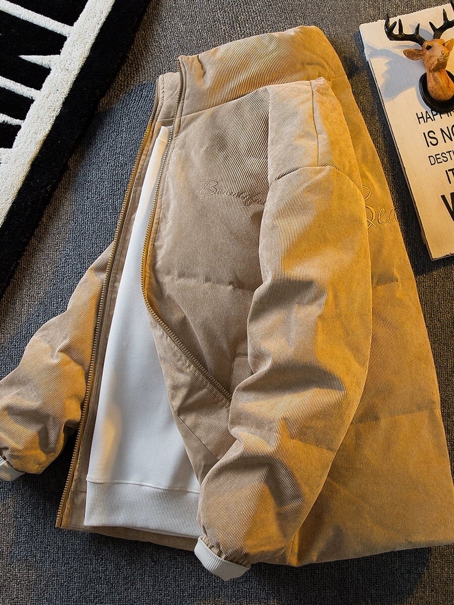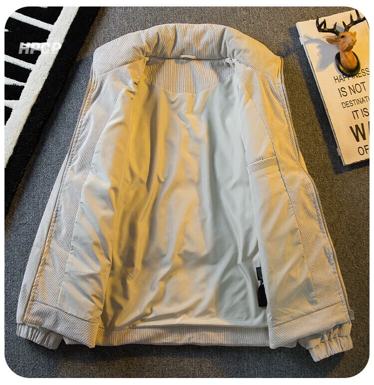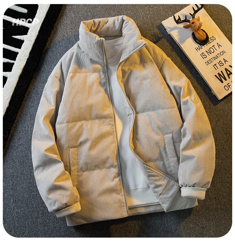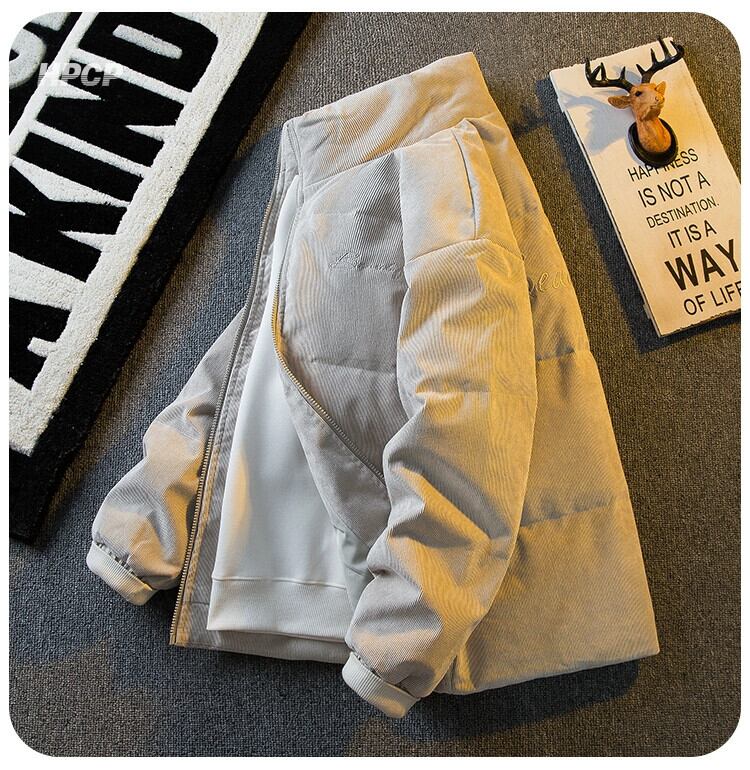Hengpai トレンディなハイエンドホワイトダックダウン軽くて薄いダウンジャケットメンズ冬アメリカンスタンドアップカラーコットンジャケットコーデュロイジャケット男性 ウィンター 冬物 3381932288962366