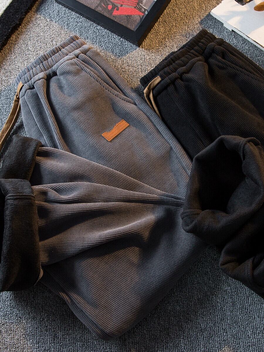 HPCP シェニールパンツメンズ冬ルーズ縦ストレートカジュアルパンツコーデュロイプラスベルベット厚く暖かいスウェットパンツ ウィンター 冬物 3381999901767023