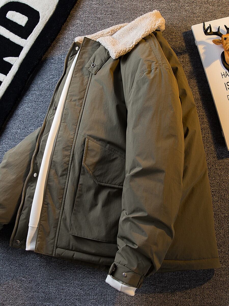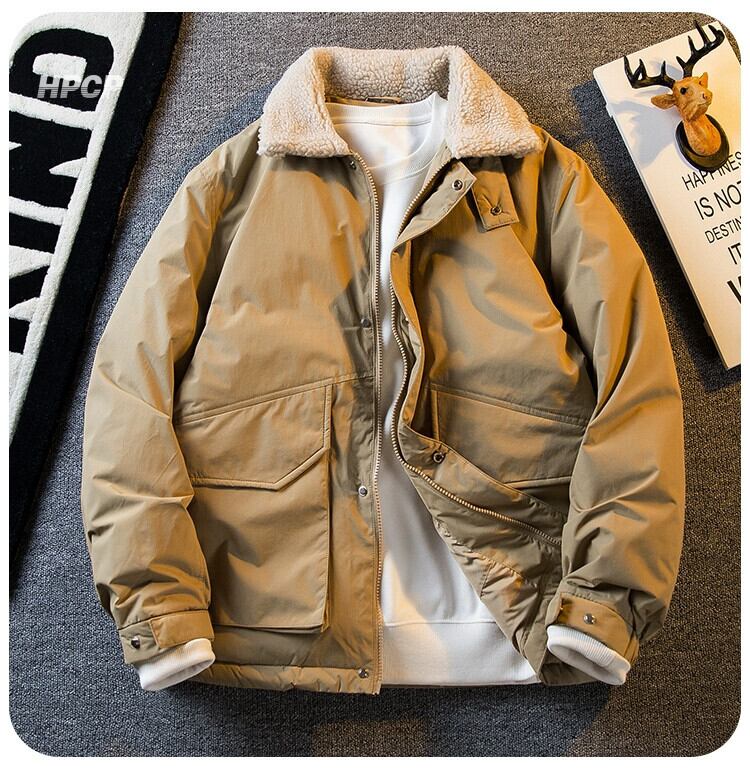Hengpai トレンディなラムベルベット回転可能なスタンドアップカラー作業服綿コートメンズ冬肥厚トレンディなブランドレトロ暖かい綿コート コットン ウィンター 冬物 3381958861155535