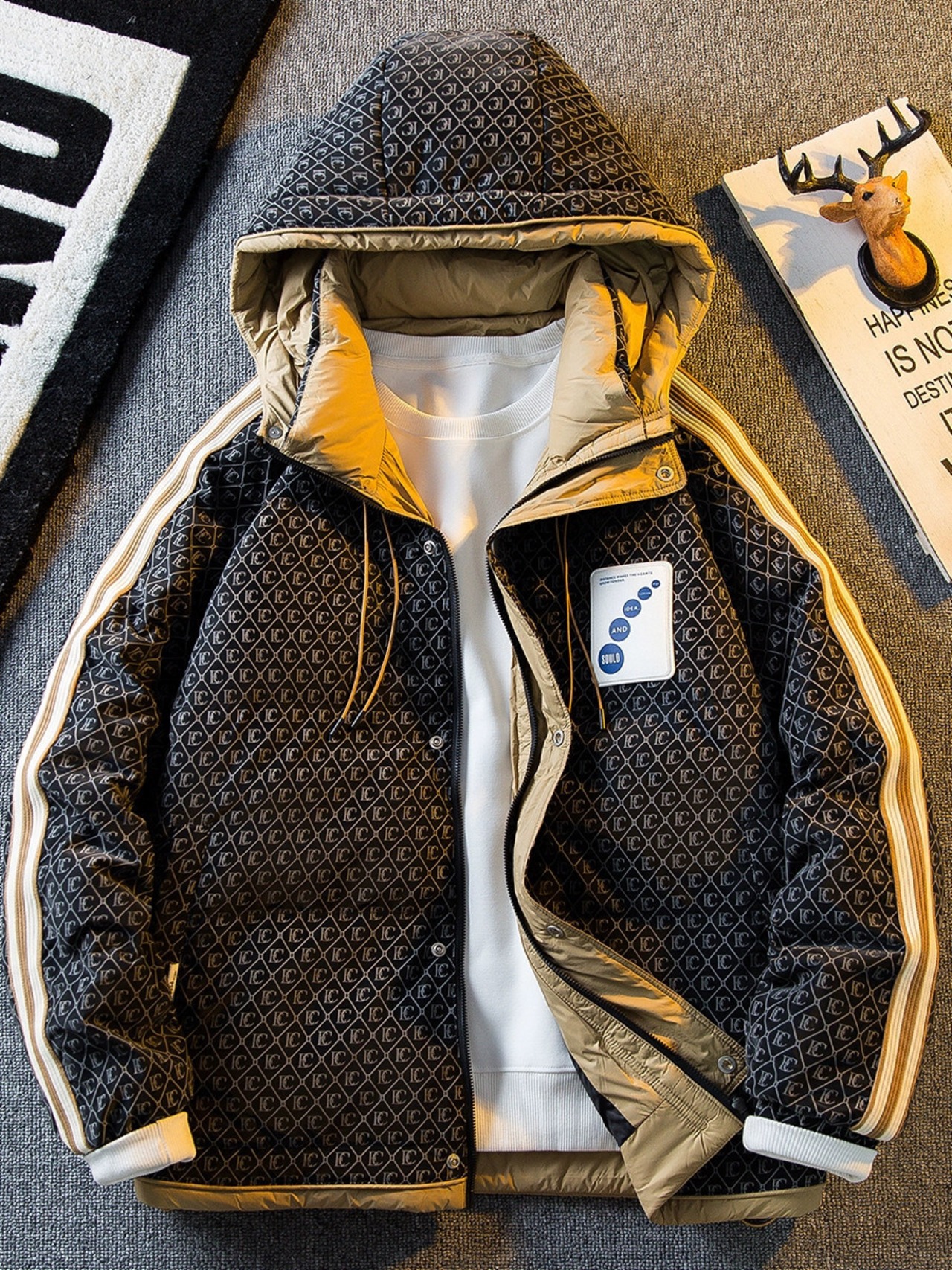 HPCP 冬のトレンディなブランドフルプリント文字ハイエンドダウンジャケットメンズ 2023 新しいメンズ肥厚フード付き防風ジャケット ウィンター 冬物 3381981633913626