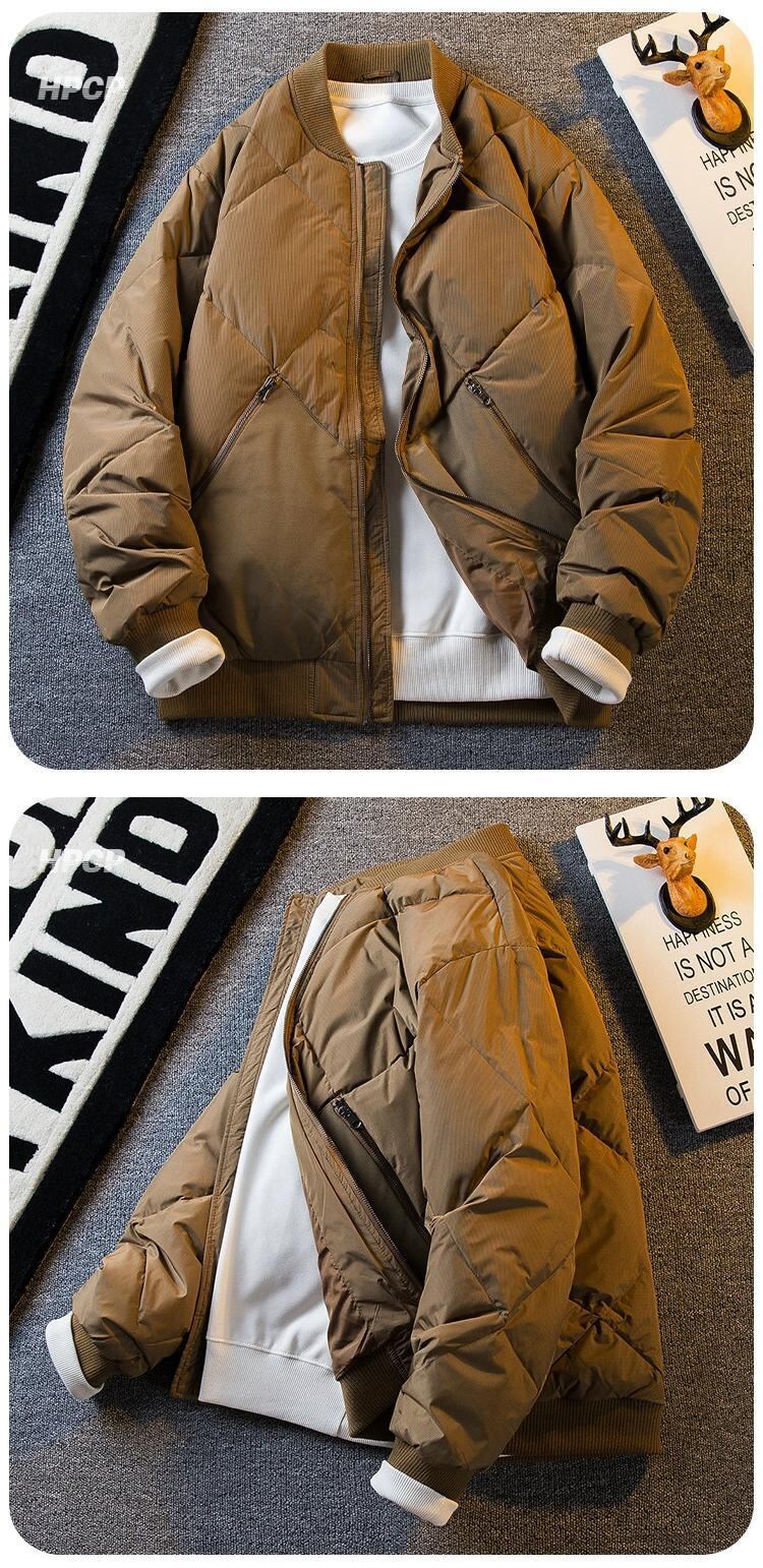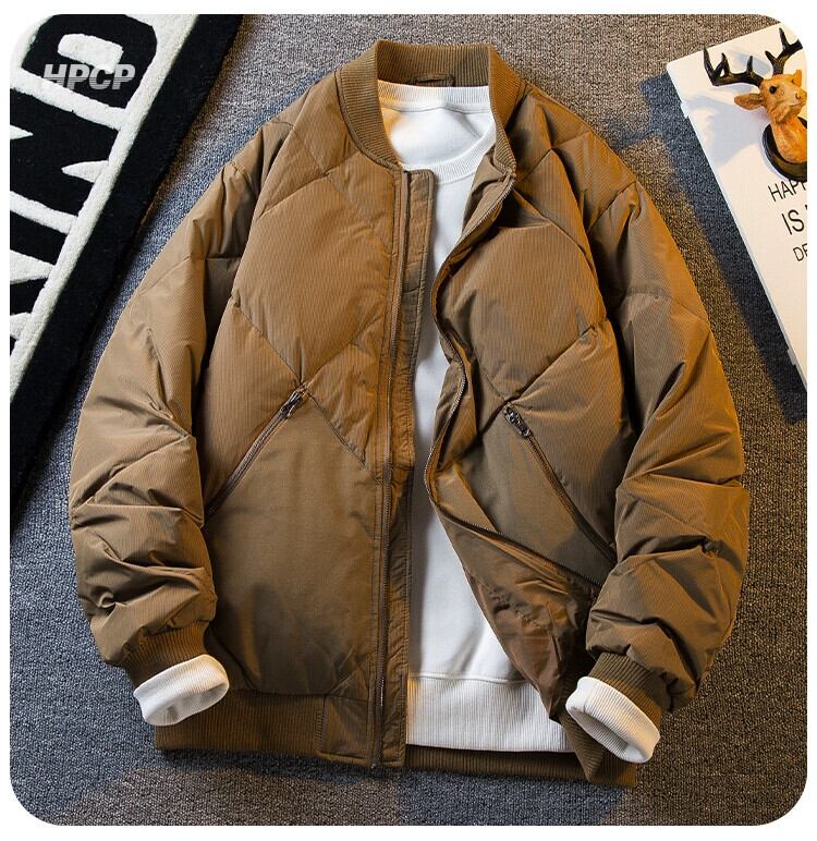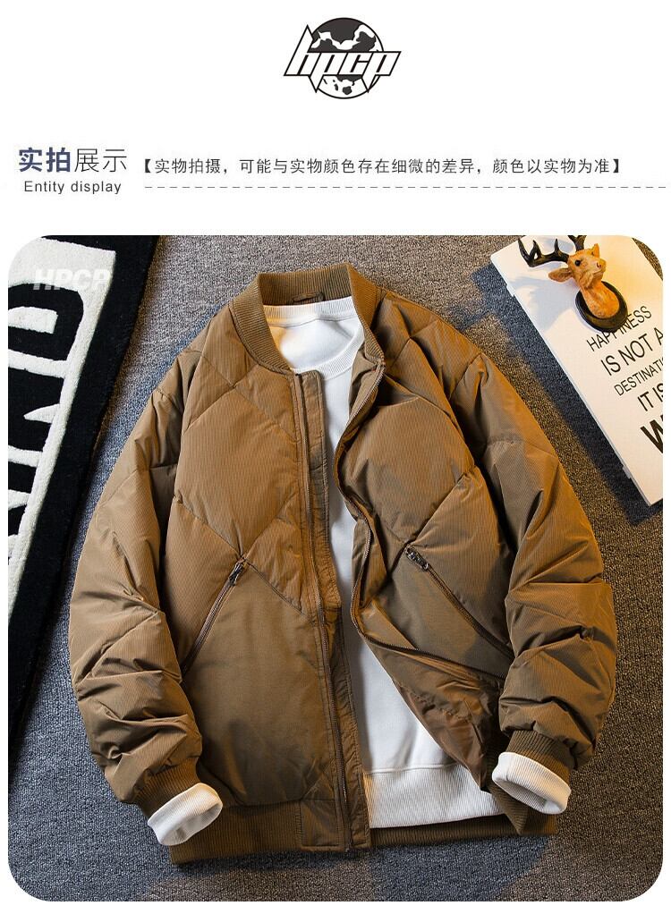 Hengpai トレンディなレトロダイヤモンド型ライトダウンジャケットメンズ冬暖かい 90 ホワイトダックダウン野球ジャケットメンズジャケット ウィンター 冬物 3381942527855251