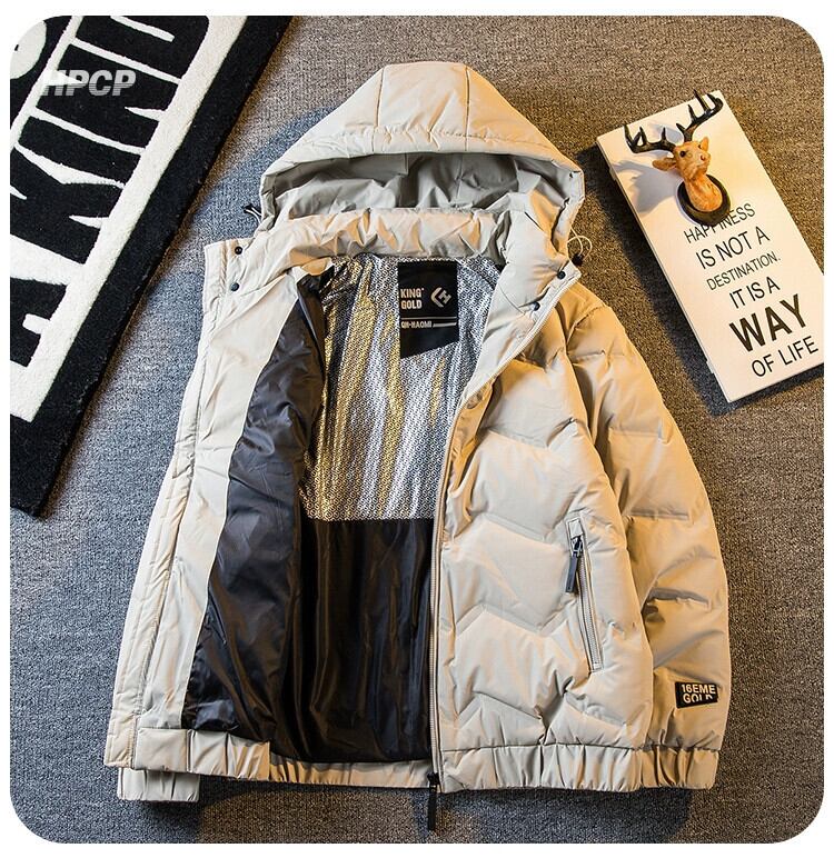 Hengpai トレンディな冬薄いホワイトダックダウンショートスリムダウンジャケットメンズトレンディなブランドフード付き暖かい防風ジャケット ウィンター 冬物 3381918683667450