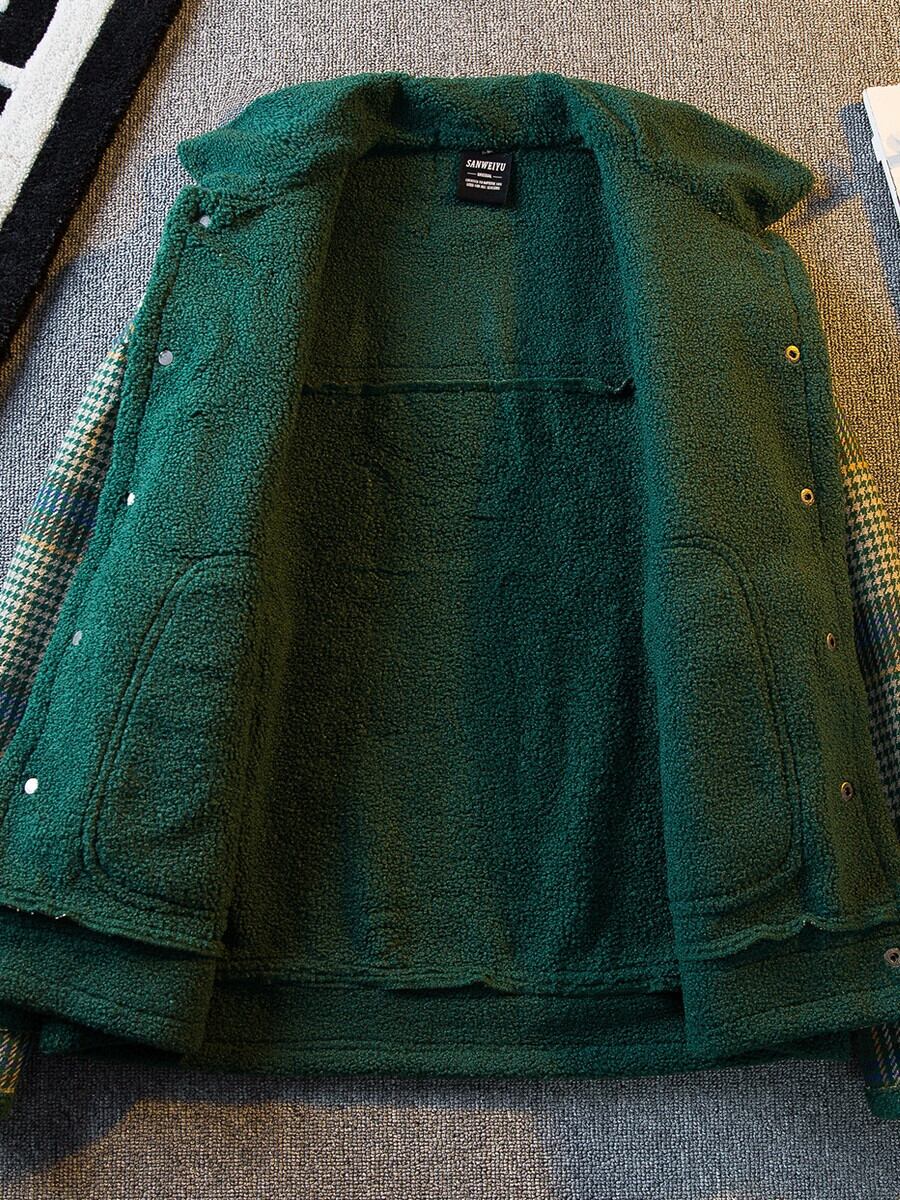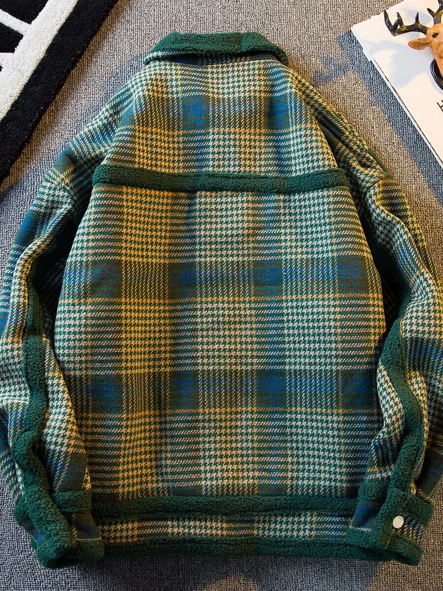 HPCP 冬肥厚チェック柄ラムベルベットジャケットメンズ綿パッドジャケット小さな香りのスタイルスプライシングラペルレトロジャケット綿パッドジャケットメンズ コットン ウィンター 冬物 3381956808214954