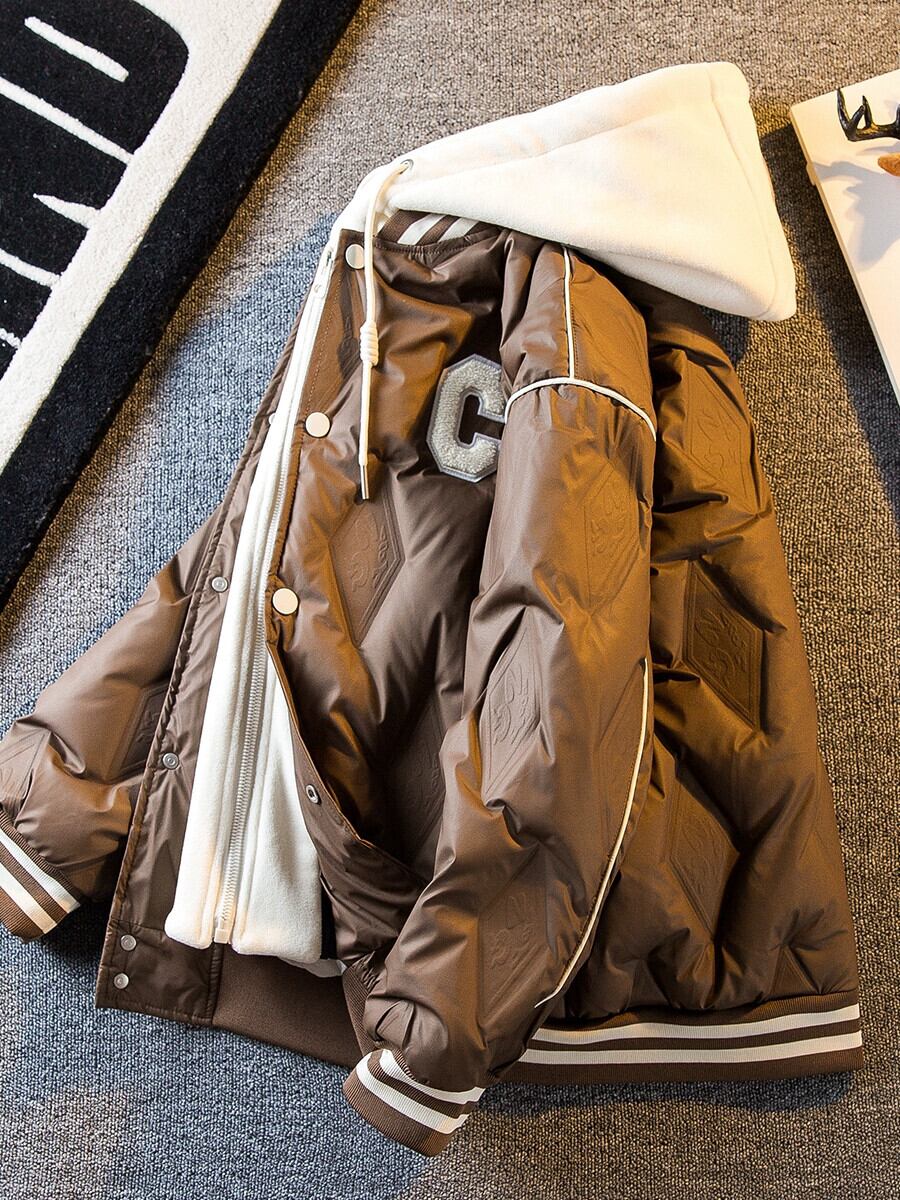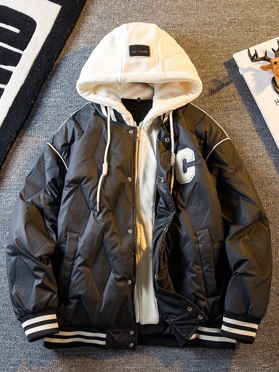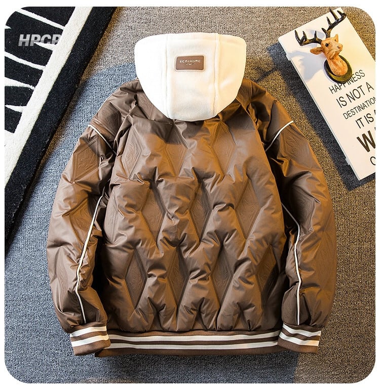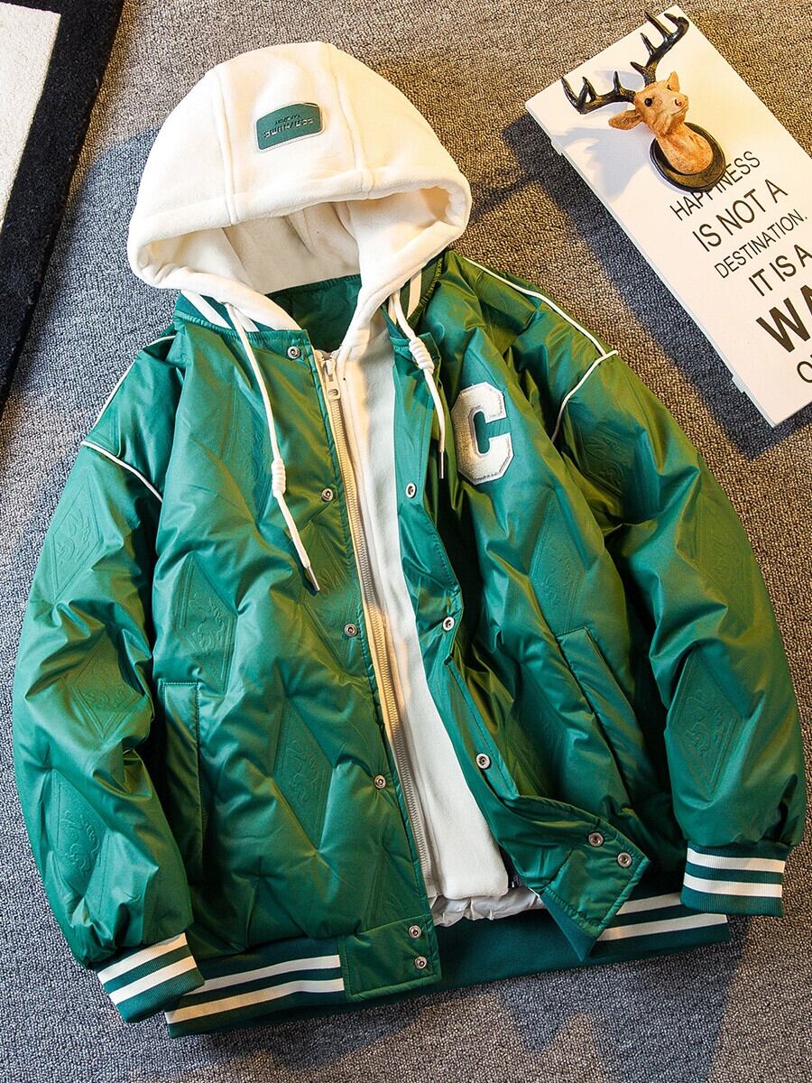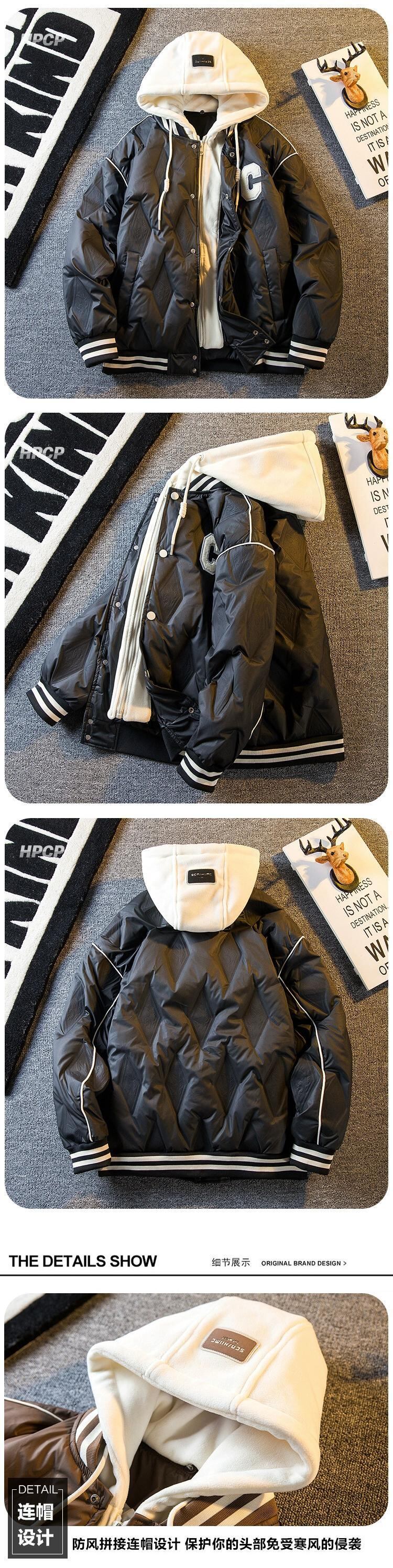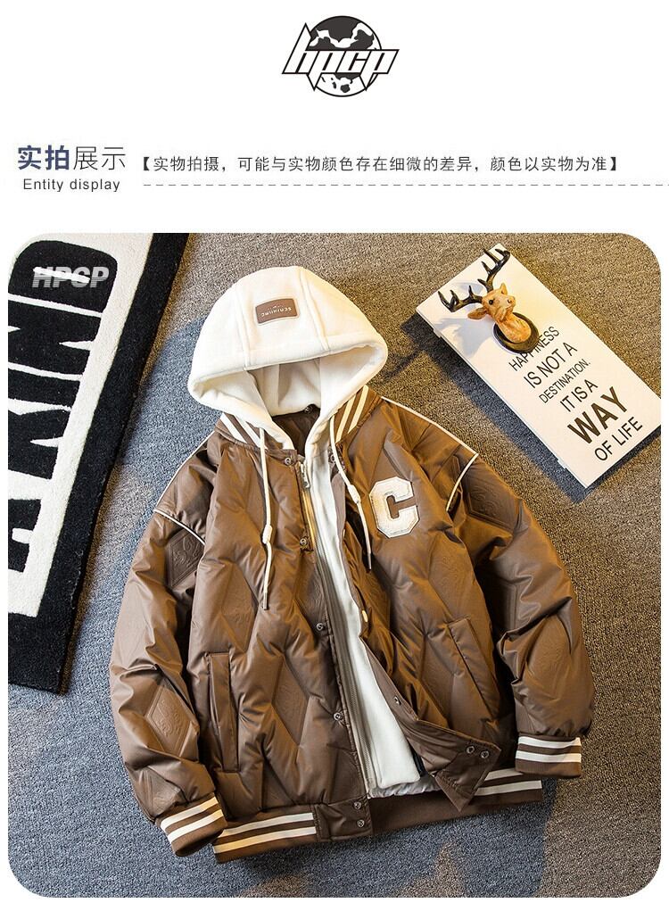Hengpai トレンディなフェイクツーピーススプライシングダウンジャケットメンズ冬の新しいトレンディなショートダイヤモンドダウン野球ジャケット ウィンター 冬物 3381939558830653