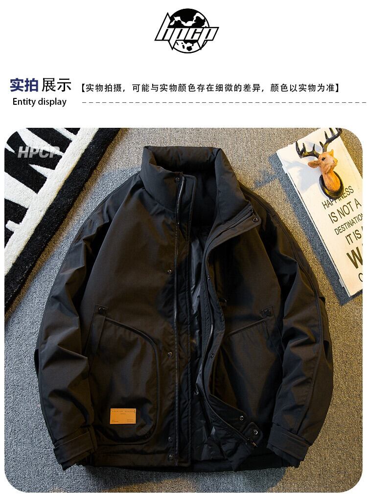 Hengpai トレンディなアメリカンレトロスタンドカラーダウンジャケットメンズ冬ハイエンドハンサムメンズ暖かいジャケット ウィンター 冬物 3381929885109611