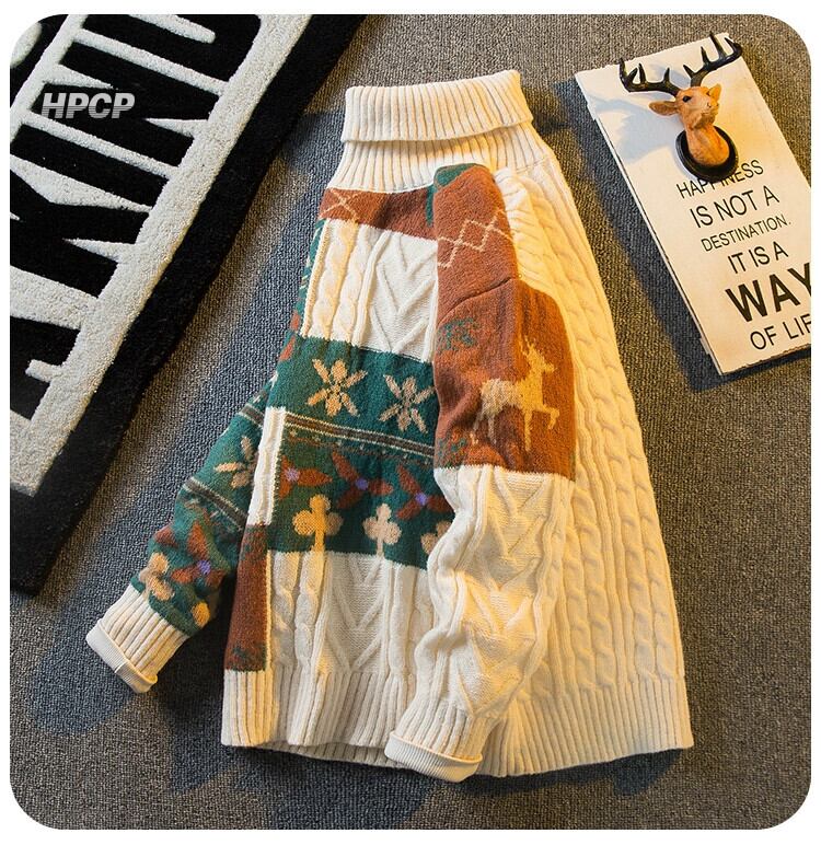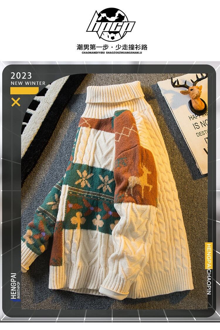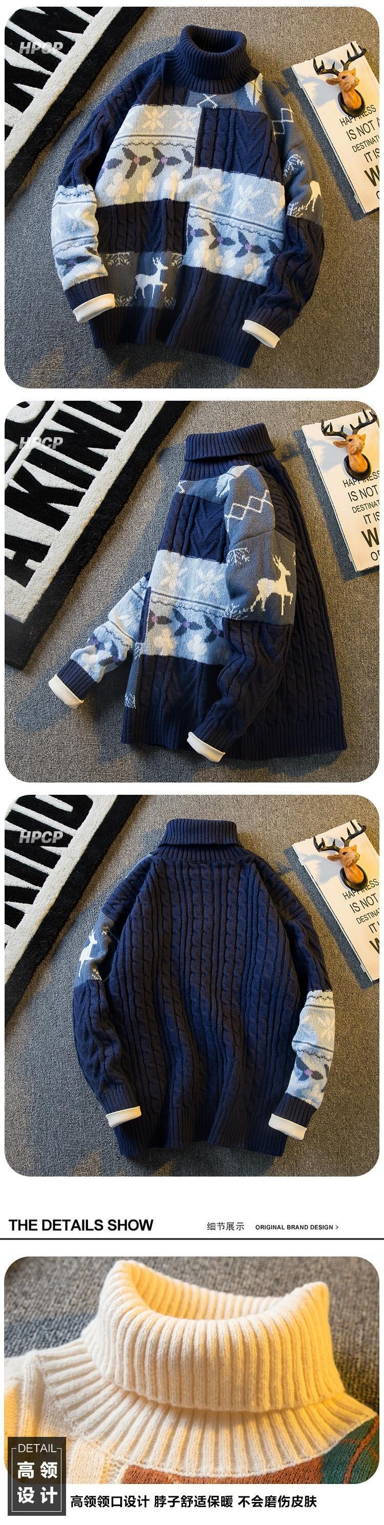 Hengpai トレンディな暖かく厚みのあるタートルネックセーターメンズ秋と冬の ese スタイルのレトロカジュアル怠惰なスタイルのプルオーバーセーター オータム 秋物 ウィンター 冬物 3381969556378529